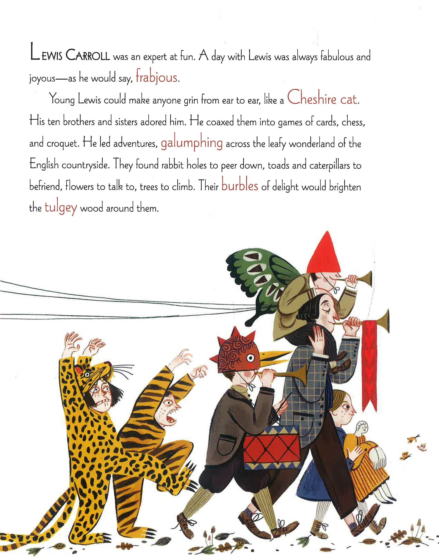 The wordsmith Lewis Carroll is famed for the freewheeling world of Wonderland in his beloved classics Alice’s Adventures in Wonderland and Through the Looking Glass. In this gloriously illustrated picture book, Carroll's childlike love of life is showcased alongside his brilliance at creating and adapting playful words and phrases. From brillig and uglification to frumious and chortle, the award-winning author Kathleen Krull uses many of Carroll’s own words to tell the story of a man who wanted to make children laugh and whose legacy continues to entertain and delight.