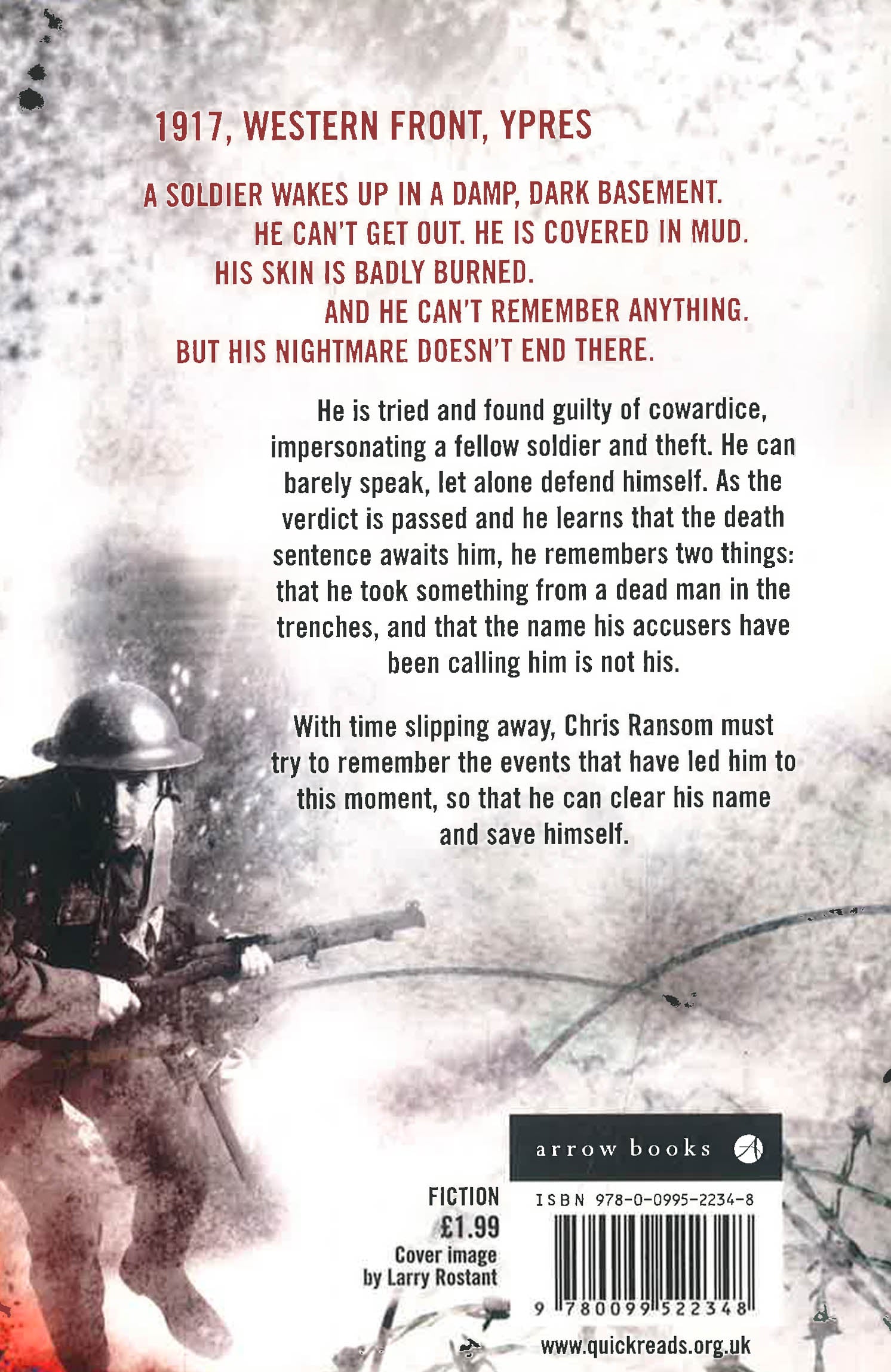 A soldier wakes up in a damp, dark basement. He can't get out. He is covered in mud.His skin is badly burned. And he can't remember anything. But his nightmare doesn't end there. He is tried and found guilty of cowardice, impersonating a fellow soldier and theft. He can barely speak, let alone defend himself. As the verdict is passed and he learns that the death sentence awaits him, he remembers two things: that he took something from a dead man in the trenches, and that the name his accusers have been calling him is not his.