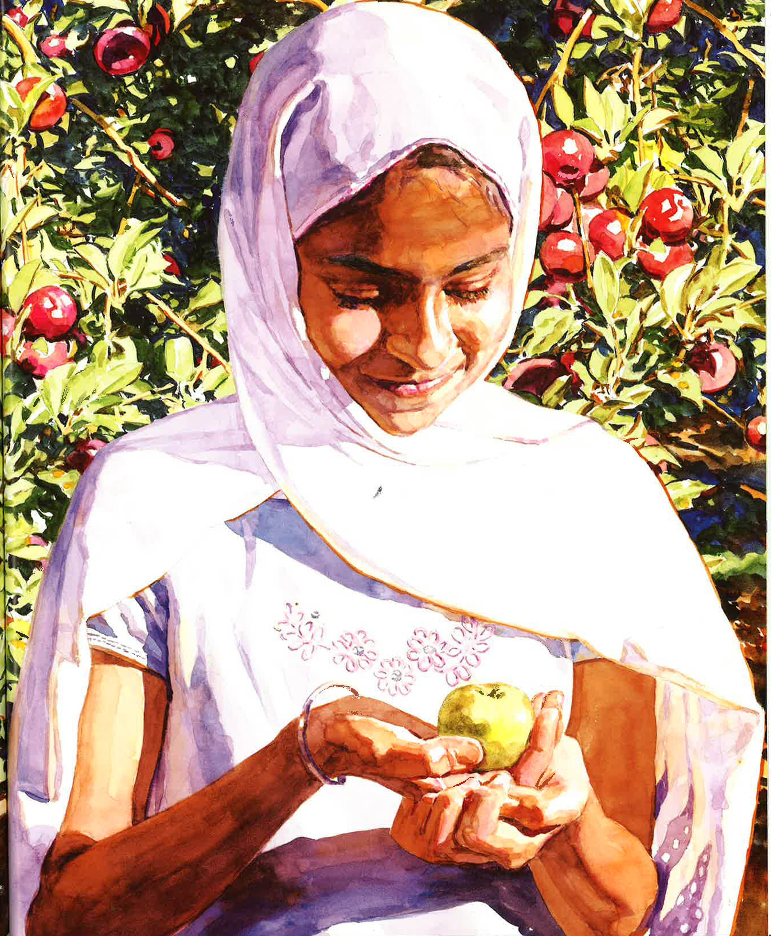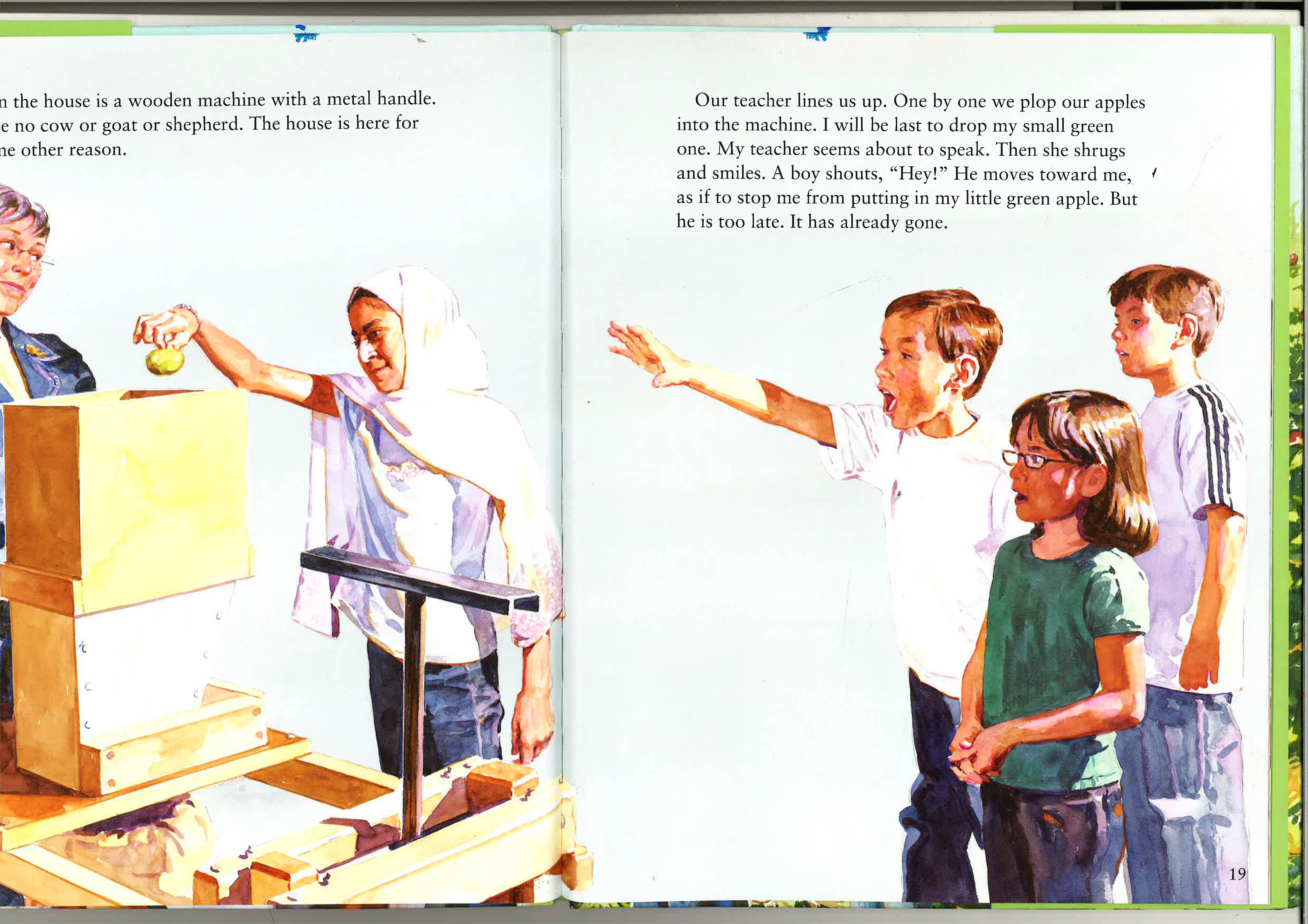 Farah feels alone, even when surrounded by her classmates. She listens and nods but doesn’t speak. It’s hard being the new kid in school, especially when you’re from another country and don’t know the language. Then, on a field trip to an apple orchard, Farah discovers there are lots of things that sound the same as they did at home, from dogs crunching their food to the ripple of friendly laughter. As she helps the class make apple cider, Farah connects with the other students and begins to feel that she belongs.