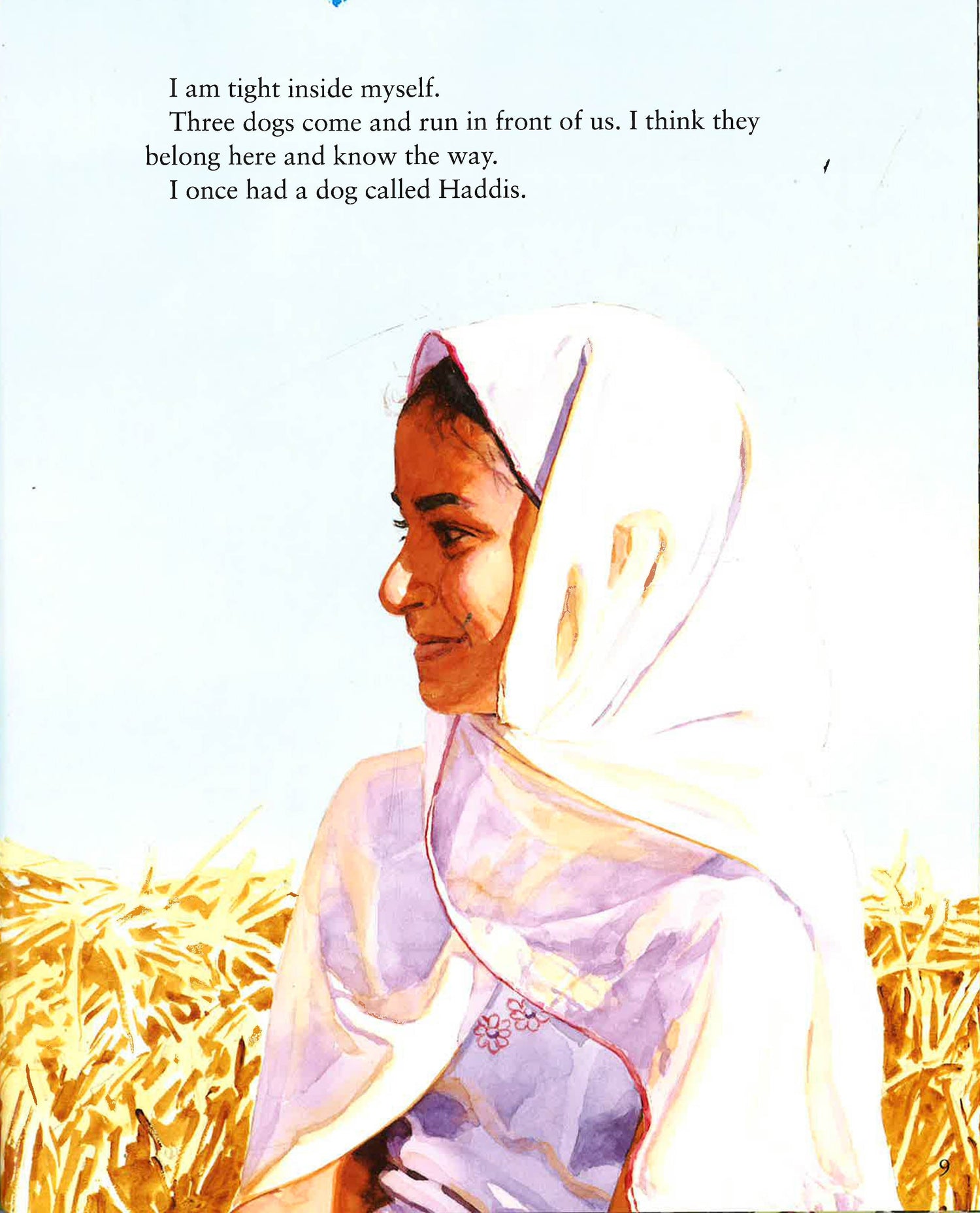 Ted Lewin’s gorgeous sun-drenched paintings and Eve Bunting’s sensitive text immediately put the reader into another child’s shoes in this timely story of a young Muslim immigrant.