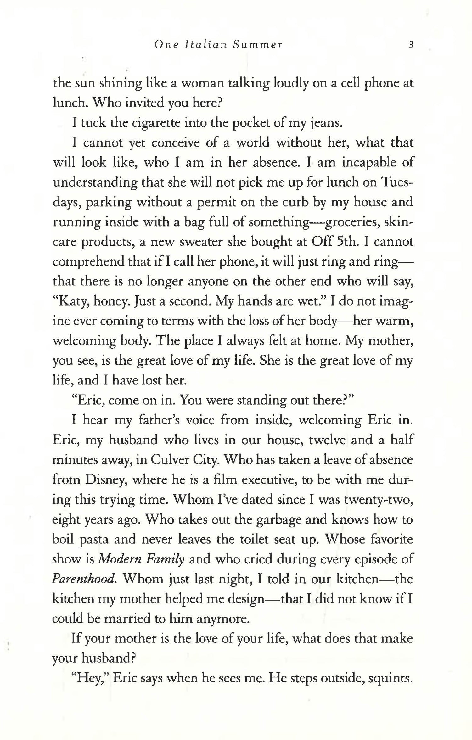 When Katy’s mother dies, she is left reeling. Carol wasn’t just Katy’s mom, but her best friend and first phone call. She had all the answers and now, when Katy needs her the most, she is gone. To make matters worse, their planned mother-daughter trip of a lifetime looms: to Positano, the magical town where Carol spent the summer right before she met Katy’s father. Katy has been waiting years for Carol to take her, and now she is faced with embarking on the adventure alone.