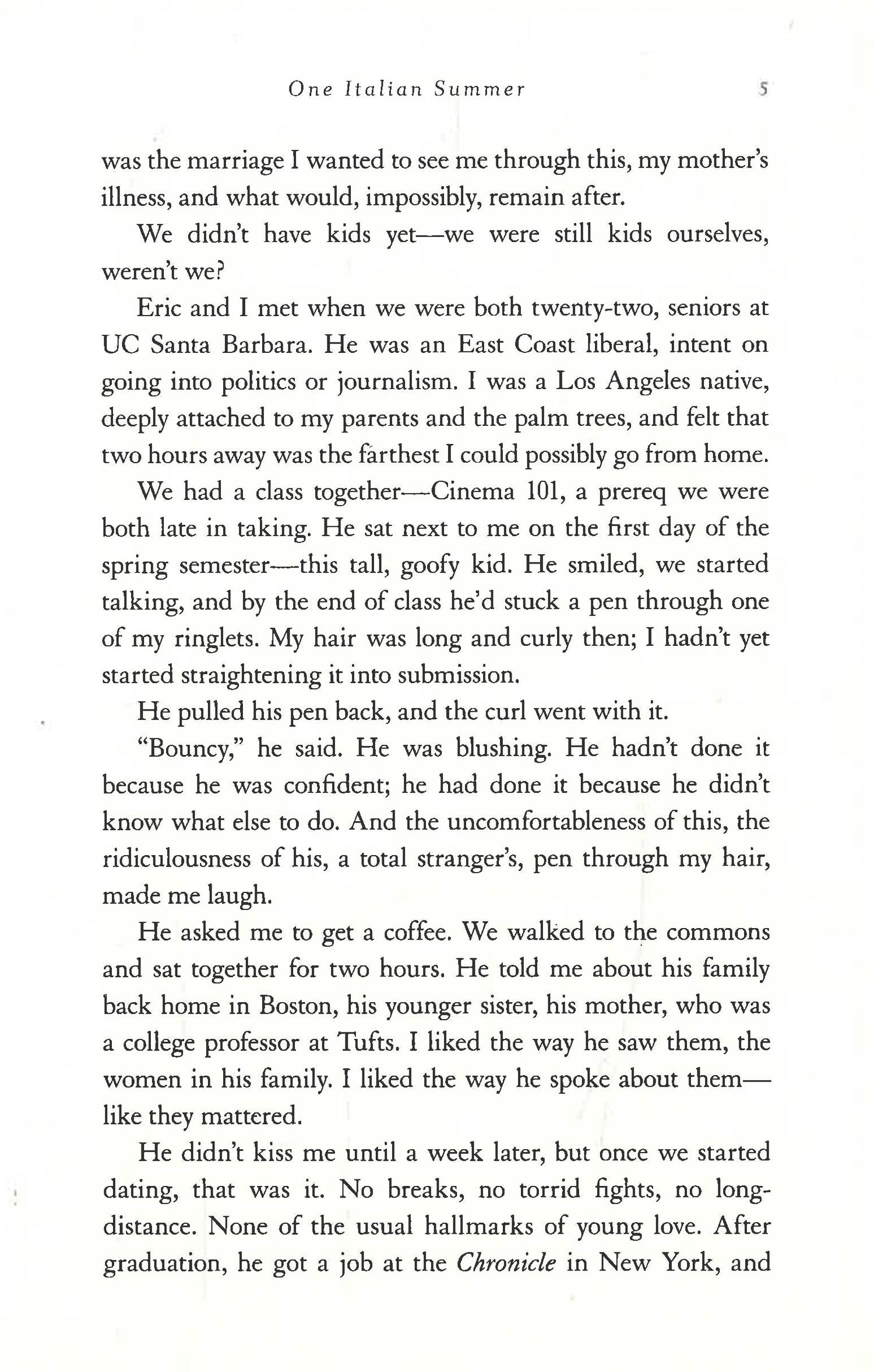 And then Carol appears—in the flesh, healthy, sun-tanned, and thirty years old. Katy doesn’t understand what is happening, or how—all she can focus on is that she has somehow, impossibly, gotten her mother back. Over the course of one Italian summer, Katy gets to know Carol, not as her mother, but as the young woman before her. She is not exactly who Katy imagined she might be, however, and soon Katy must reconcile the mother who knew everything with the young woman who does not yet have a clue.