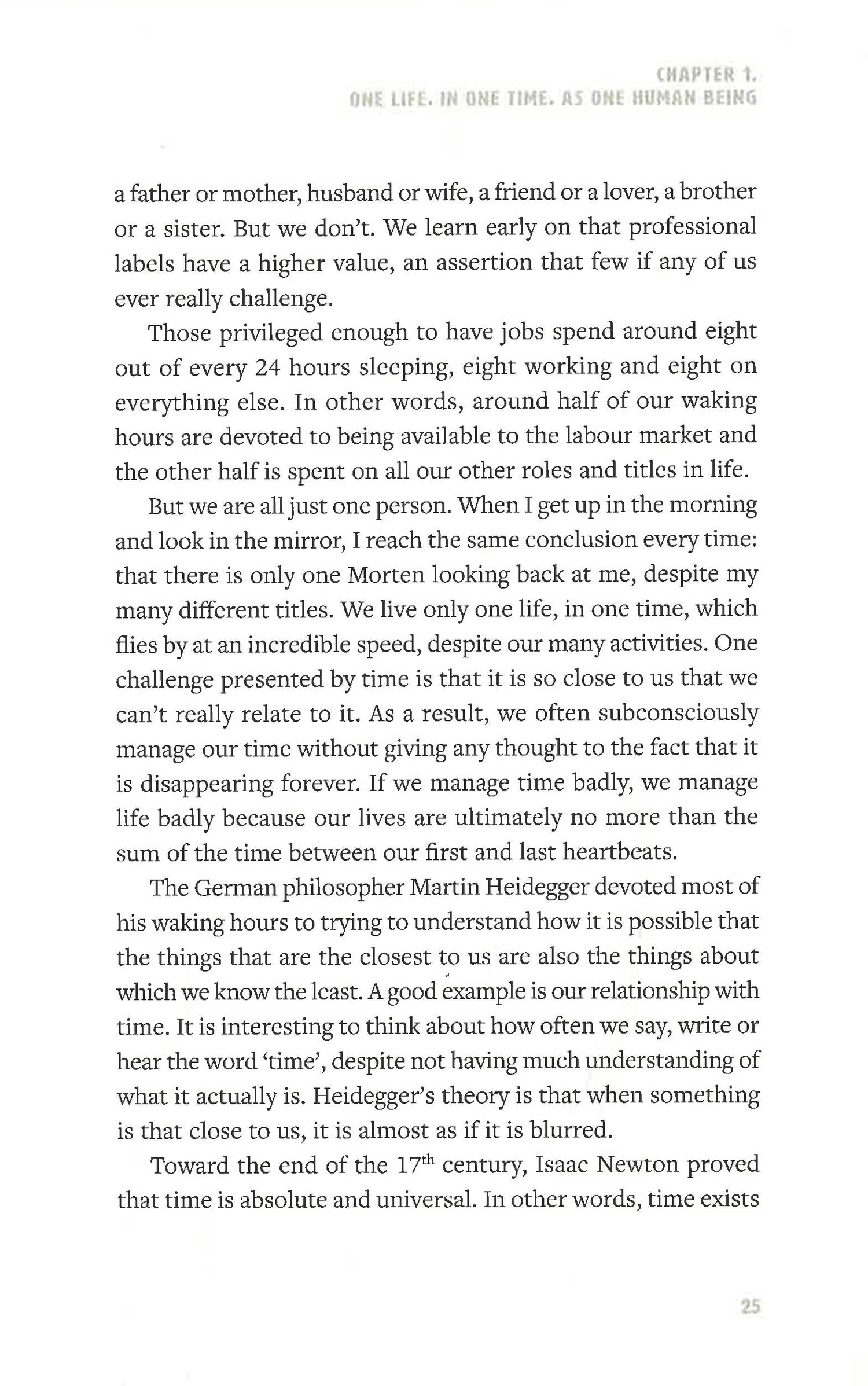 Never before in history have so many humans suffered from depression, anxiety, and stress. The World Health Organization estimates that more than 300 million people struggle with depression - equivalent to 4.4 percent of the world's population, with even more suffering from anxiety and stress. Therefore, it is critical to understand why those of us, especially in prosperous countries with high living standards, continue to get sick, particularly due to work-related stress. Studies have consistently shown purpose and meaningfulness to be essential for performance and mental health in a work place. As a result, human beings are increasingly seeking purpose and meaning in their life. Key to unlocking meaning is the idea that we are all one human being, regardless of the context. It is the purpose of this book to ensure we stop separating our persona into a working human being and private human being, and instead see ourselves as one human being, with one life in one lifetime.