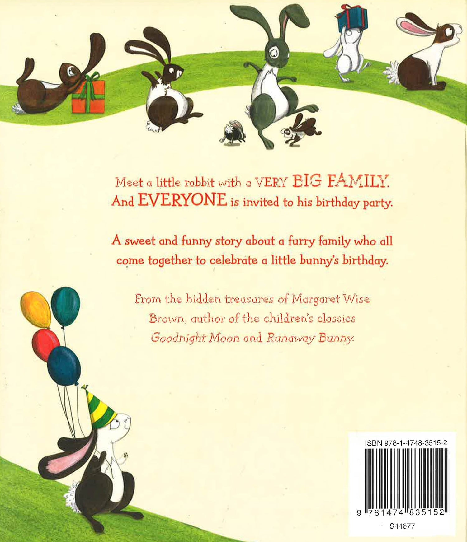 Meet a little rabbit with a very big family. And EVERYONE is invited to his birthday party. A sweet and funny story about a furry family who all come together to celebrate a little bunny's birthday.