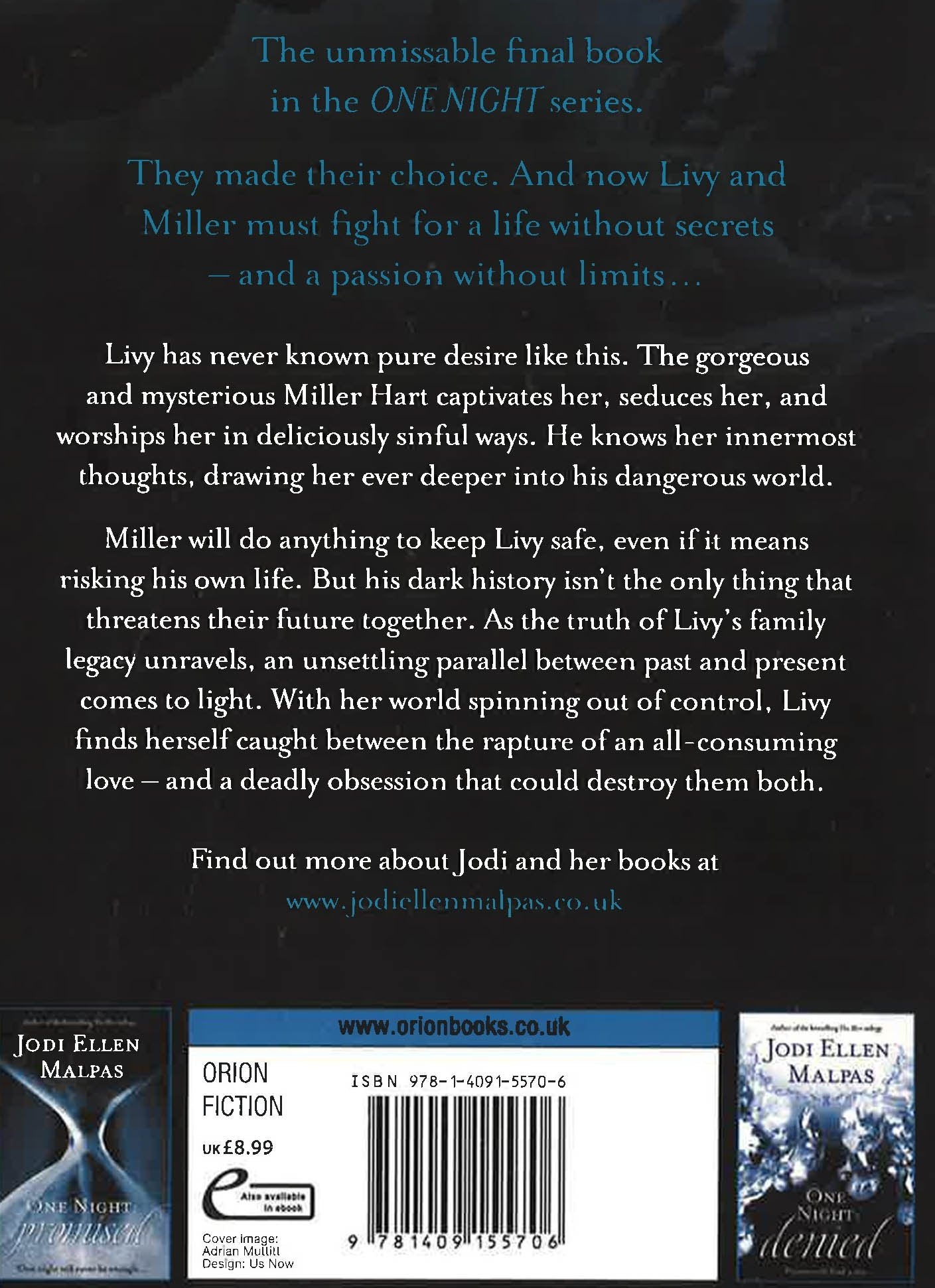 Miller will do anything to keep Livy safe, even if it means risking his own life. But his dark history isn't the only thing that threatens their future together. As the truth of Livy's family legacy unravels, an unsettling parallel between past and present comes to light. With her world spinning out of control, Livy finds herself caught between the rapture of an all-consuming love - and a deadly obsession that could destroy them both.