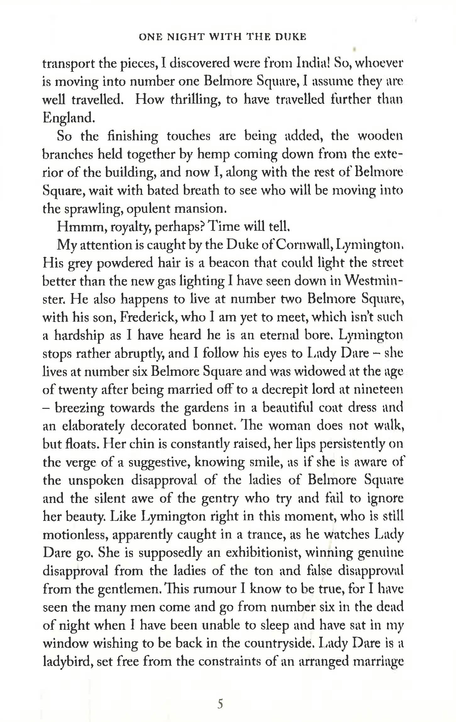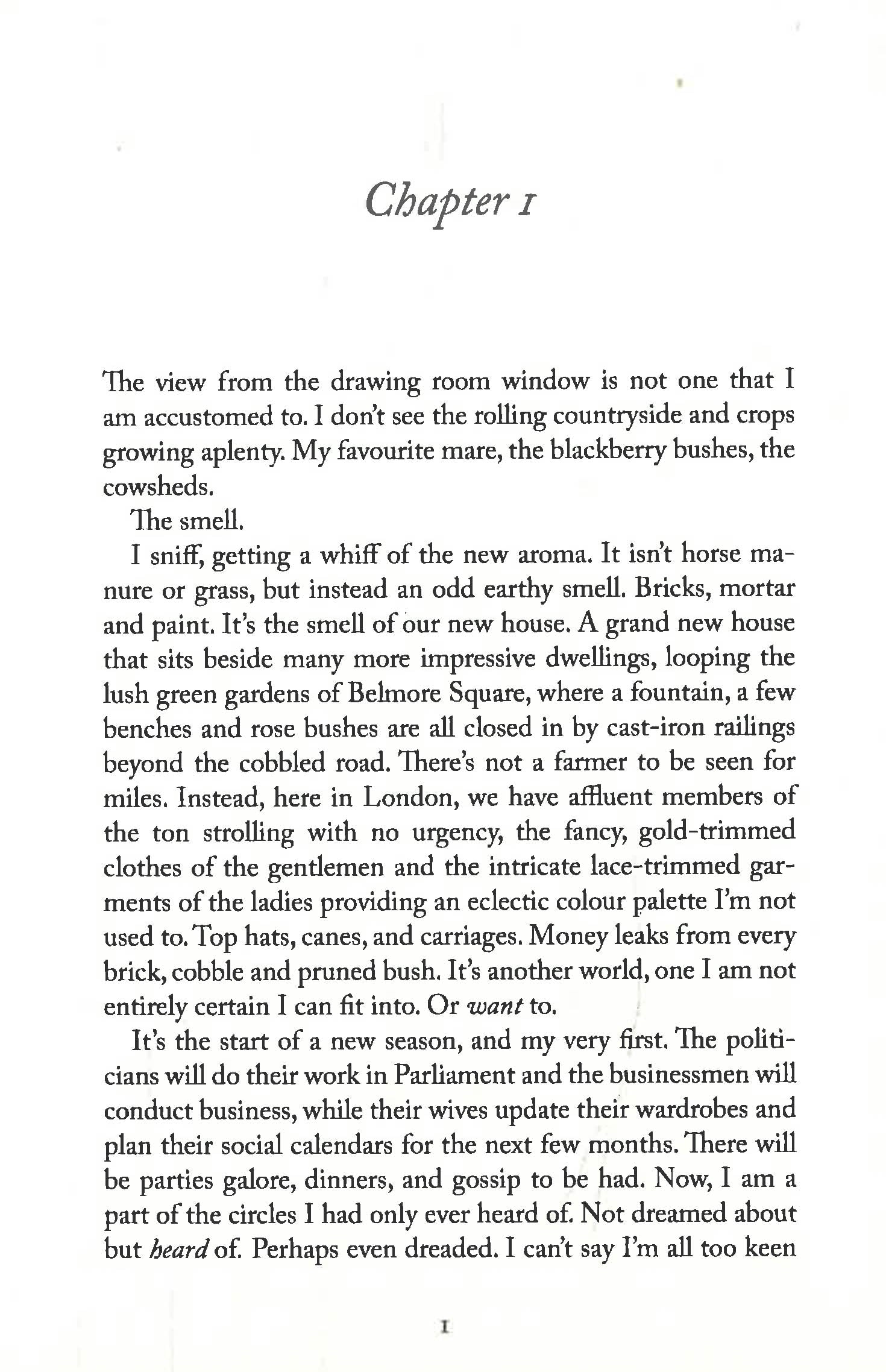 It's 1816 and nineteen-year-old Eliza Melrose, daughter of a printing magnate, is about to be launched into London's high society - much to her distaste, the last thing she wants is a husband.