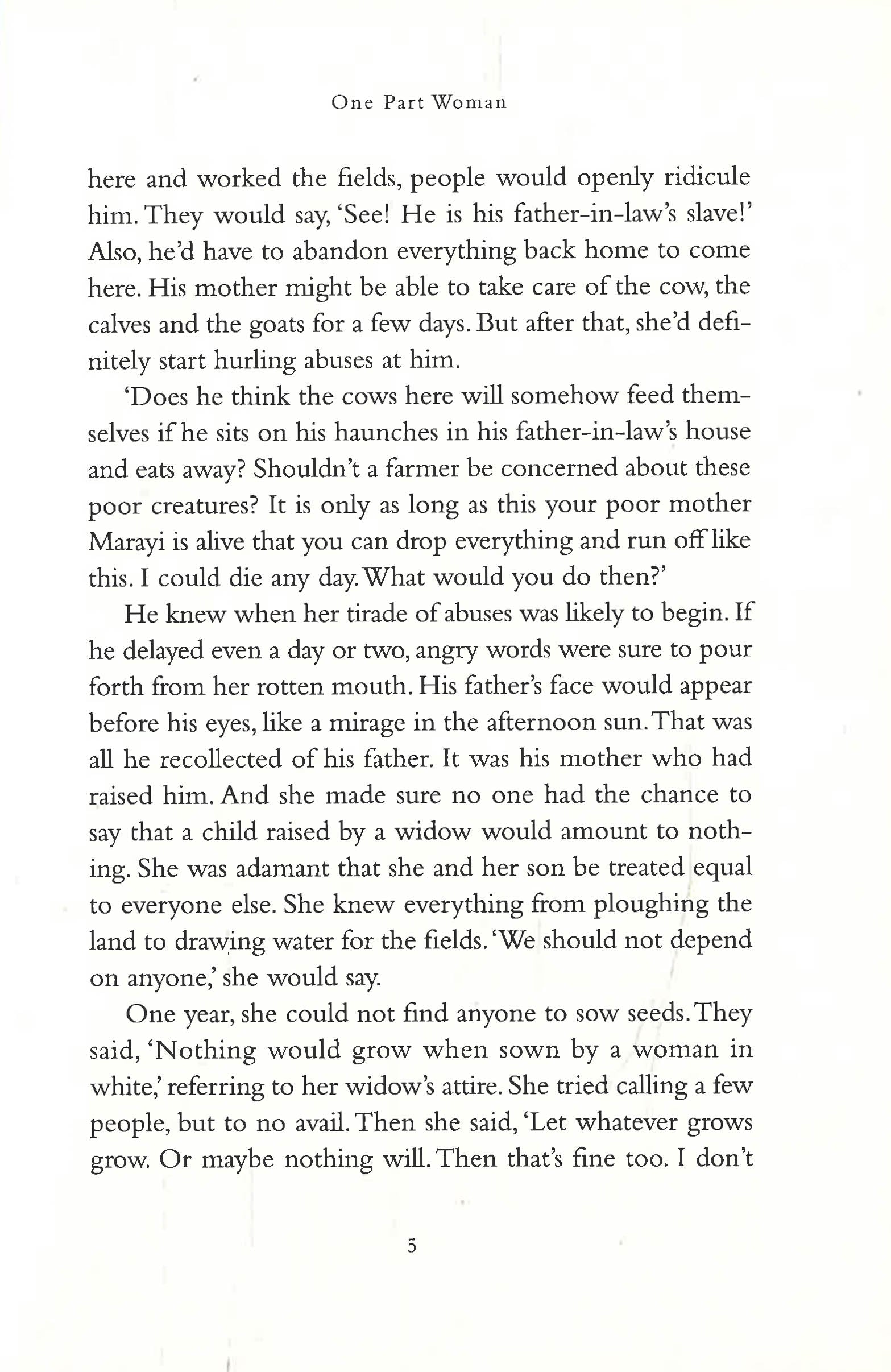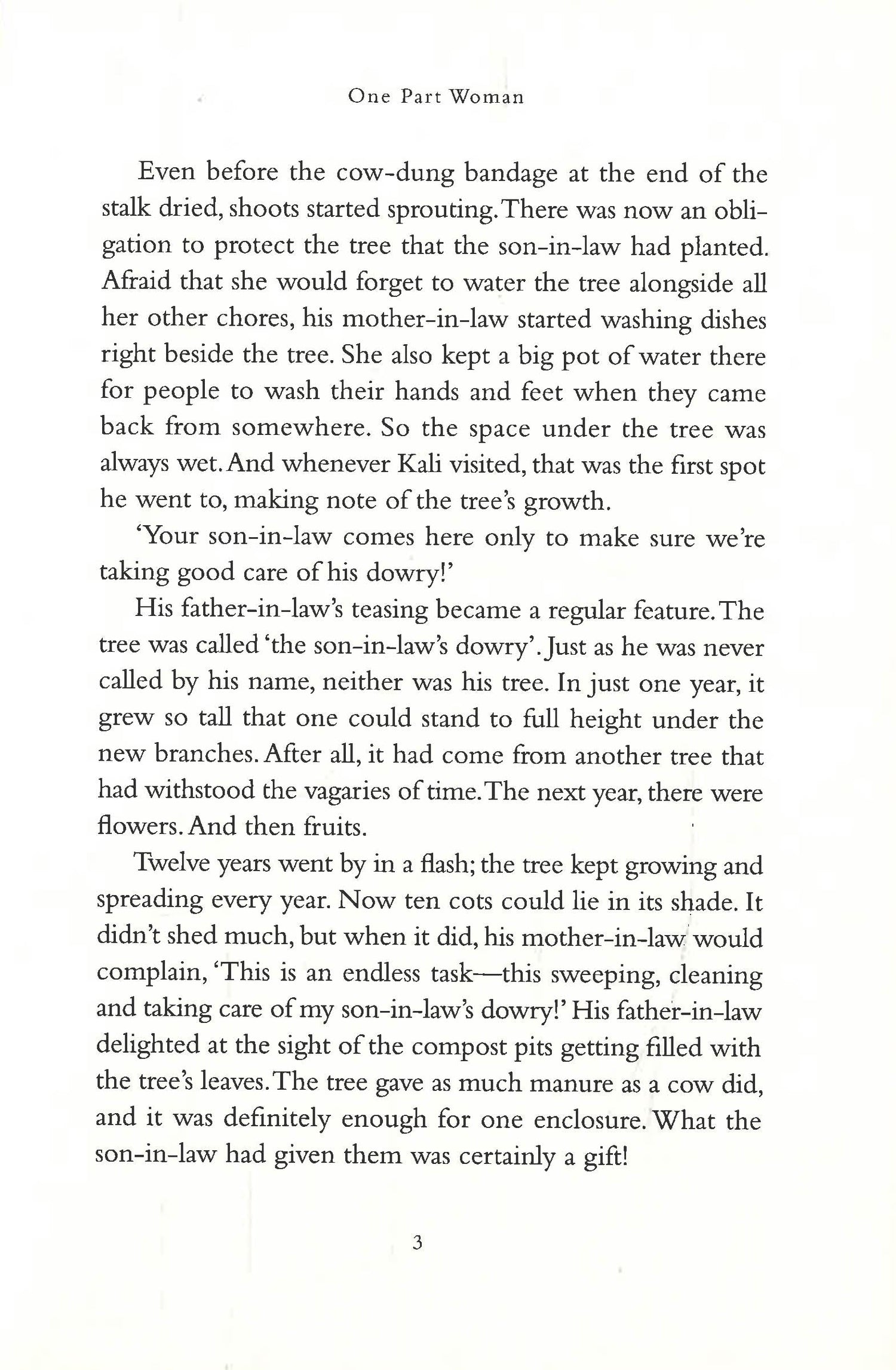 Wryly amusing, fable-like, and deeply poignant, One Part Woman is a powerful exploration of a loving marriage strained by the expectations of others, and an attack on the rigid rules of caste and tradition that continue to constrict opportunity and happiness today.