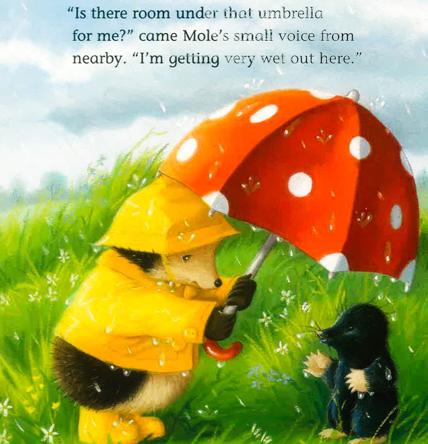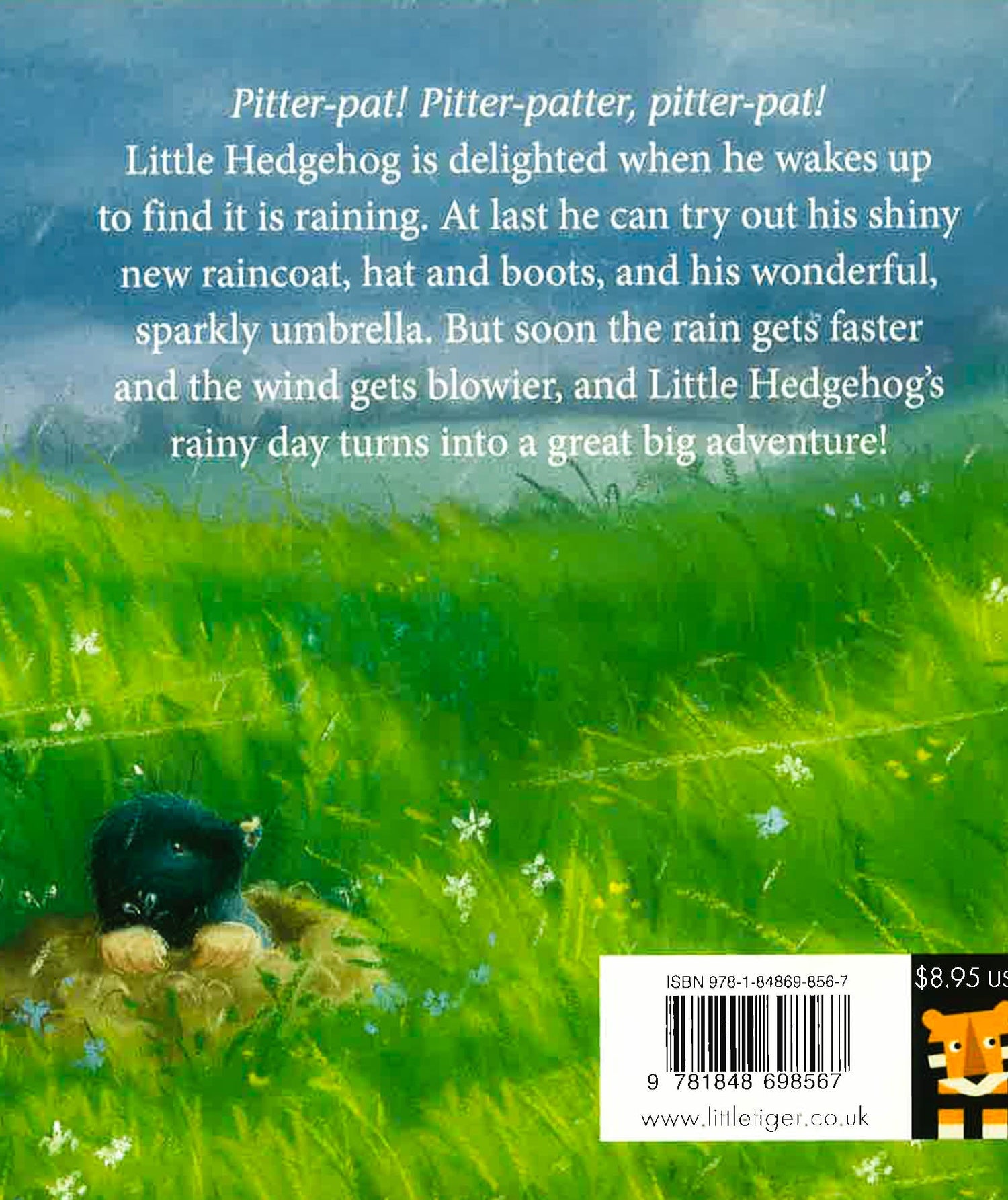 Little Hedgehog is delighted when he wakes up to find it is raining. At last he can try out his shiny new raincoat, hat and boots, and his wonderful, sparkly umbrella. But soon the rain gets faster and the wind gets blowier, and Little Hedgehog's rainy day turns into a great big adventure!