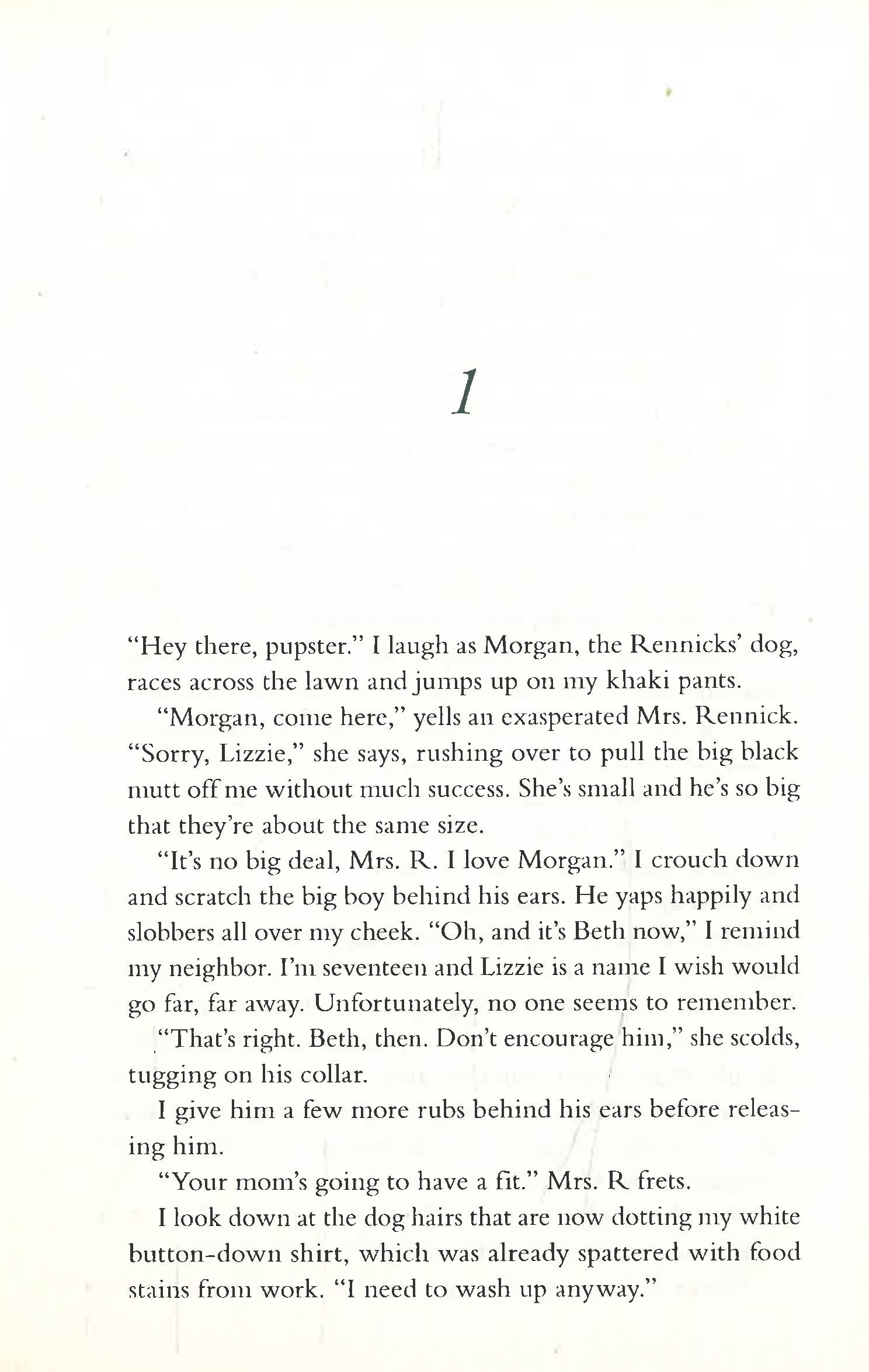 Fresh out of juvie and determined to start his life over, Chase has demons to face and much to atone for, including his part in the night Beth's sister died. Beth, who has more reason than anyone to despise him, is willing to give him a second chance. A forbidden romance is the last thing either of them planned for senior year, but the more time they spend together, the deeper their feelings get.