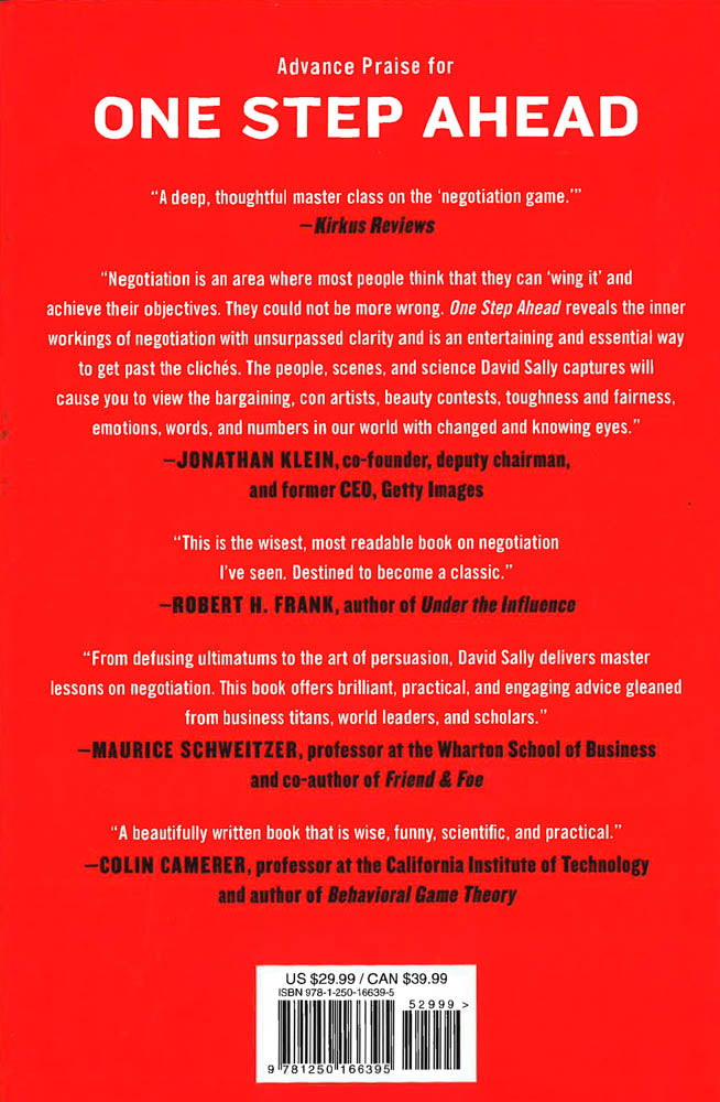 Based on cutting-edge studies and real-world results, and drawing parallels to everything from the NBA to the corner con game to Machiavelli, Xi Jinping, and Barack Obama, One Step Ahead upends conventional wisdom to make sure that you have what it takes to stay one step ahead―no matter whom you are facing across the table.