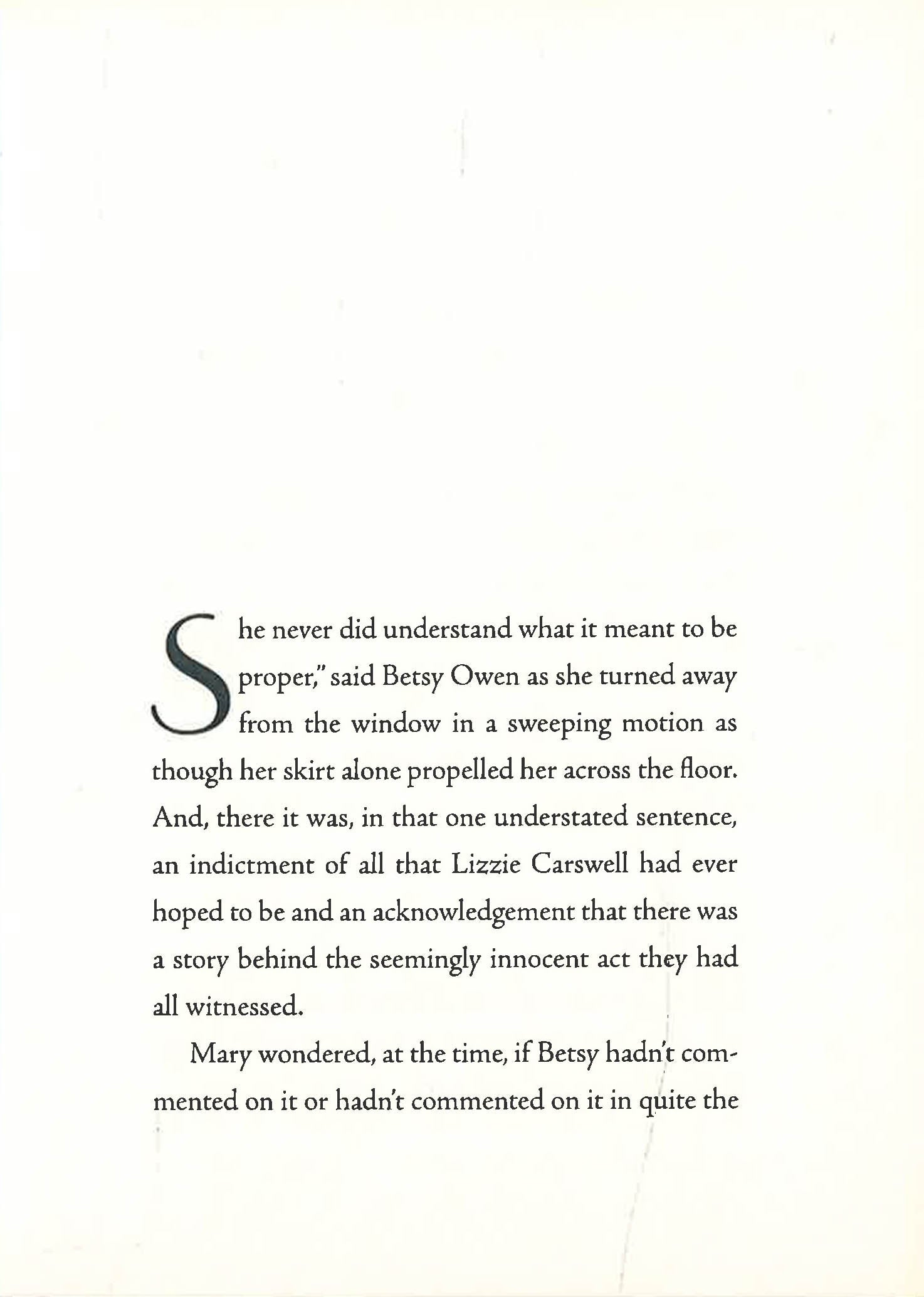 One Sunday morning four women at a bridge party in the elegant Gramercy Park Hotel see a beautiful young woman whom they all know leaving a nearby hotel with a man who is not her husband. The sight of twenty-year-old Lizzie Carswell with Billy Holmes is shocking and potentially ruinous. And though the ladies do not know the whole story - and despite their mutual promise to keep what they've seen to themselves - it is only a matter of time before one of them talks . . . with heartbreaking consequences for them all.