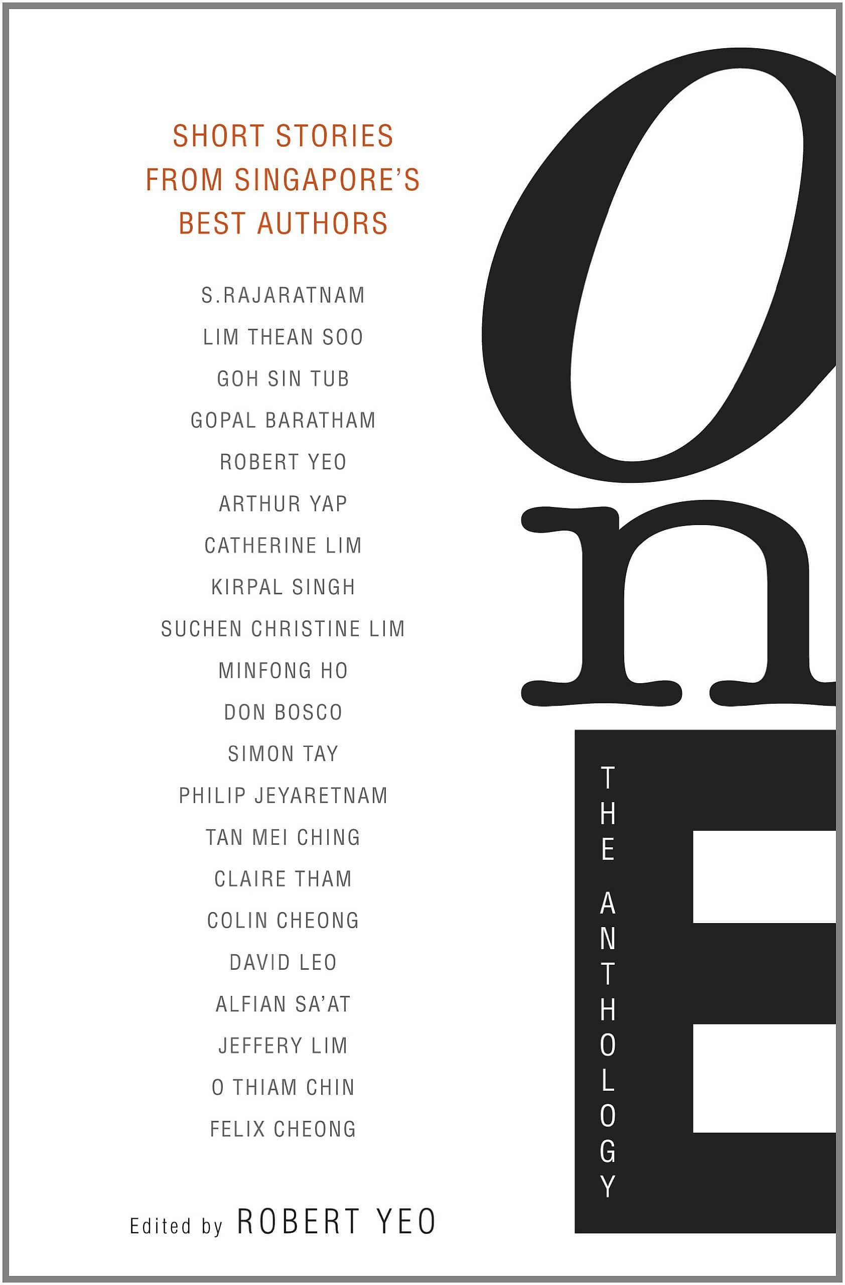 The short story is a form taken up with many local authors. One attempts to anthologise the Singaporean Short Story; featuring twenty-one stories from the likes of S. Rajaratnam, Catherine Lim, Minfong Ho, Kirpal Singh, Colin Cheong and Alfian Sa'at. Named to make a dramatic point, this anthology selects the best from each according to Robert Yeo-an established name in the local literary scene. At its heart, this one story is not intended to be representative of the author's oeuvre but to discover an instance where an author infuses a story with his or her personality or unique style. The chosen stories are also varied, individually artistically-crafted, and as a whole, display the wide-range of local stories. This way, readers can trace the development of a line of writing over several books and decades.