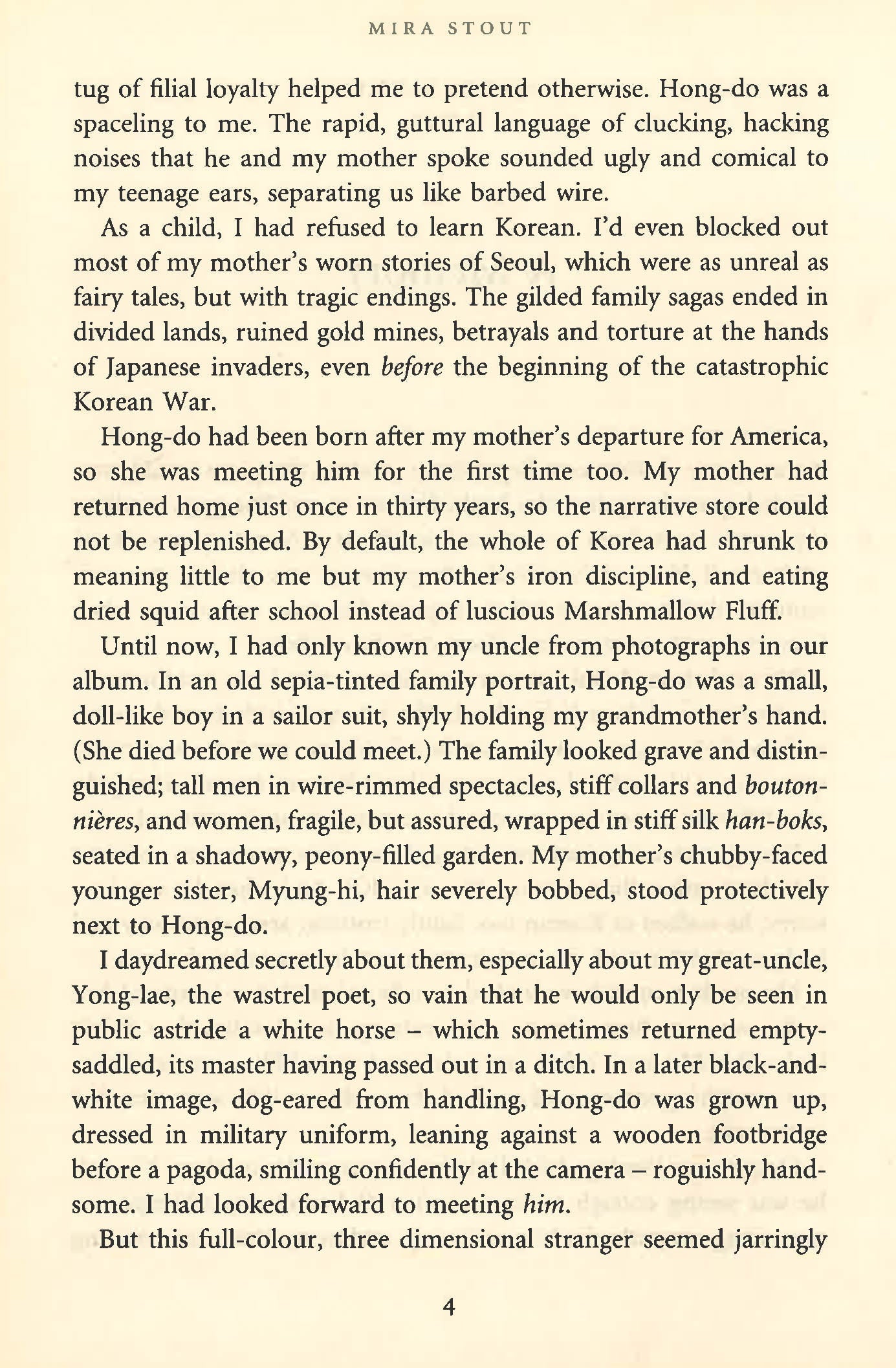 An epic tale of an enigmatic land - Korea - and one woman's search for her past. Uncle Hong-do arrives in Vermont from Korea to see the sister he has never met, a concert violinist long settled in America. His colourful visit turns his teenage niece Anna's world upside down, disrupting her cosy existence with his eccentric customs, forcing into it a fresh and intriguing tang of Korea. Then, too soon, he returns to Seoul. When Anna leaves for the orient many years later to uncover her family's elusive history, her departure stirs up vivid, shocking memories for her mother, of her gilded childhood in Korea and the story of her noble clan's fall from power. Long ago, her grandfather, Lord Min, commanded his own private armies and his vast estates straddled North and South. In defiance of centuries of barbarous invasions - by the Japanese, Manchus, and finally the Communists - he built a temple high in the mountains, and planted one thousand chestnut trees to shield it from view. Now, generations later, his trees call back his great-granddaughter, and Anna sets out with Uncle Hong-do to find the hidden temple. A powerful mixture of memoir and fiction - the `Wild Swans' of Korea.