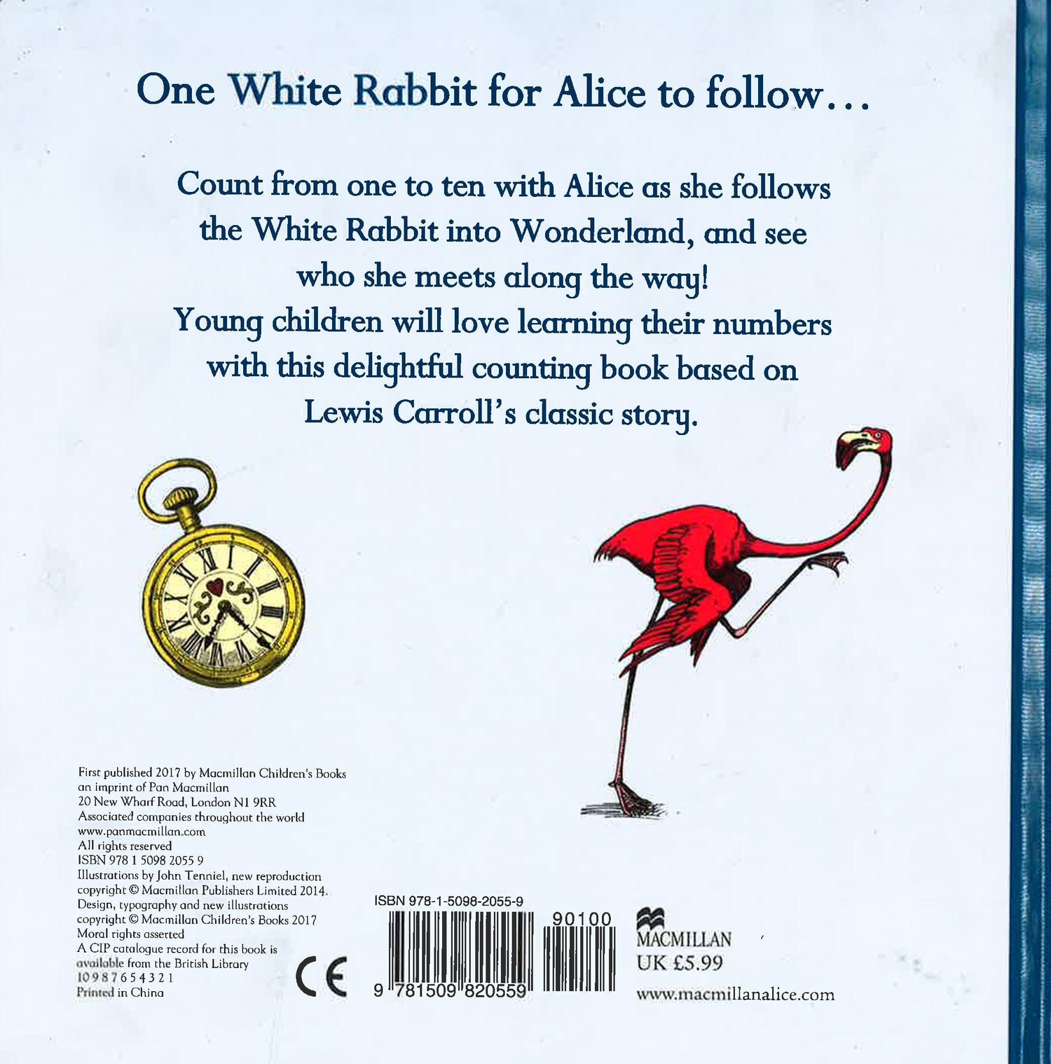 From "One White Rabbit for Alice to follow" to "Five grins from the Cheshire Cat," and "Nine tarts made by the Queen," this is a charming book. The traditional illustrations are by Sir John Tenniel, supplemented by additional pictures in Tenniel's style and beautiful Victorian-style decorative motifs.