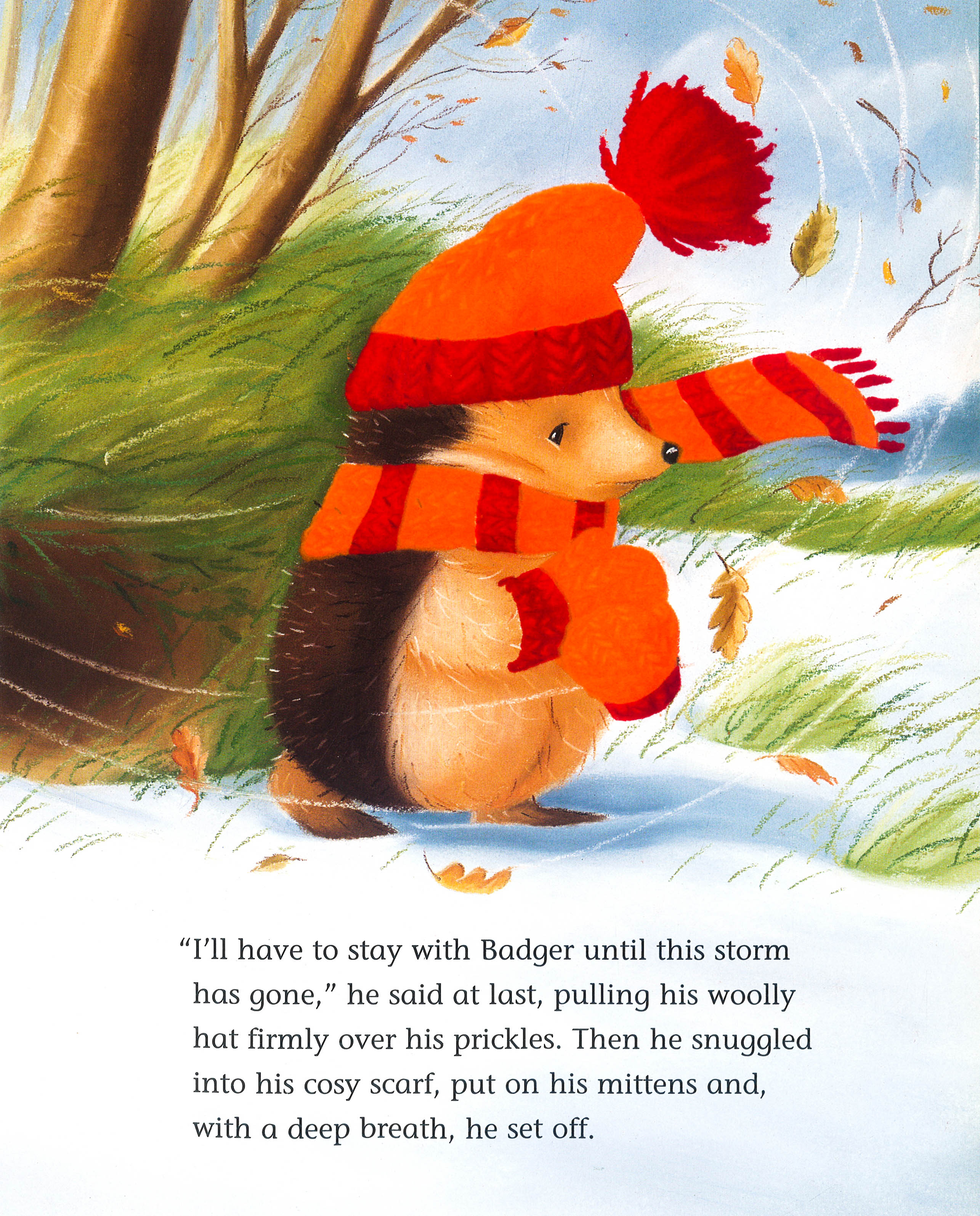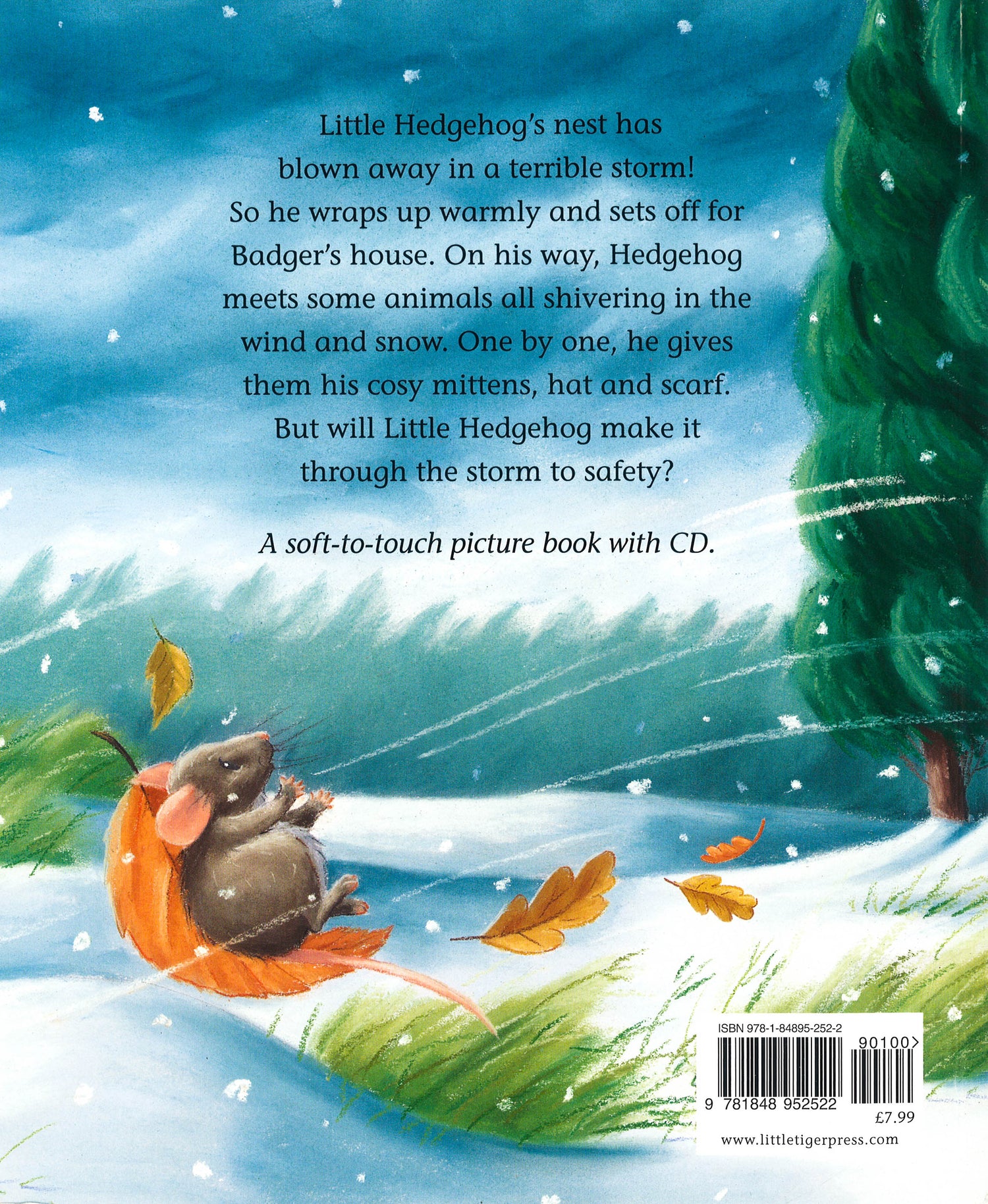 When Little Hedgehog's nest is blown away in a terrible storm, he wraps up warmly and sets off for Badger's house. On his way Hedgehog meets lots of animals shivering in the wind and snow. One by one, he gives them his cosy mittens, hat and scarf. But will Little Hedgehog make it through the storm to safety? The Little Tiger Press picture book and CD sets are a great aid to improving reading skills and are perfect for bedtime, for journeys or for listening together. Each picture book is accompanied by a CD featuring a fantastic telling of the story, complete with music and sound effects.