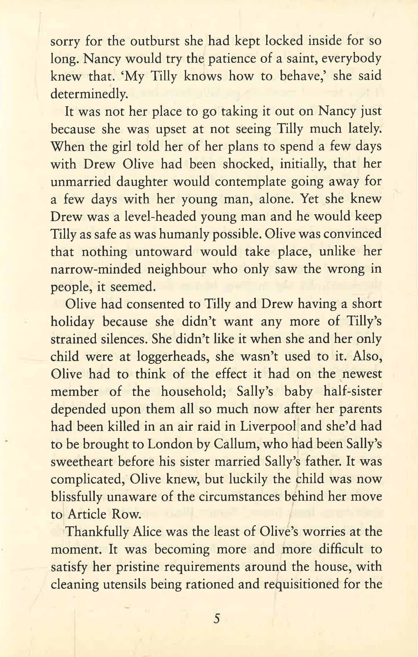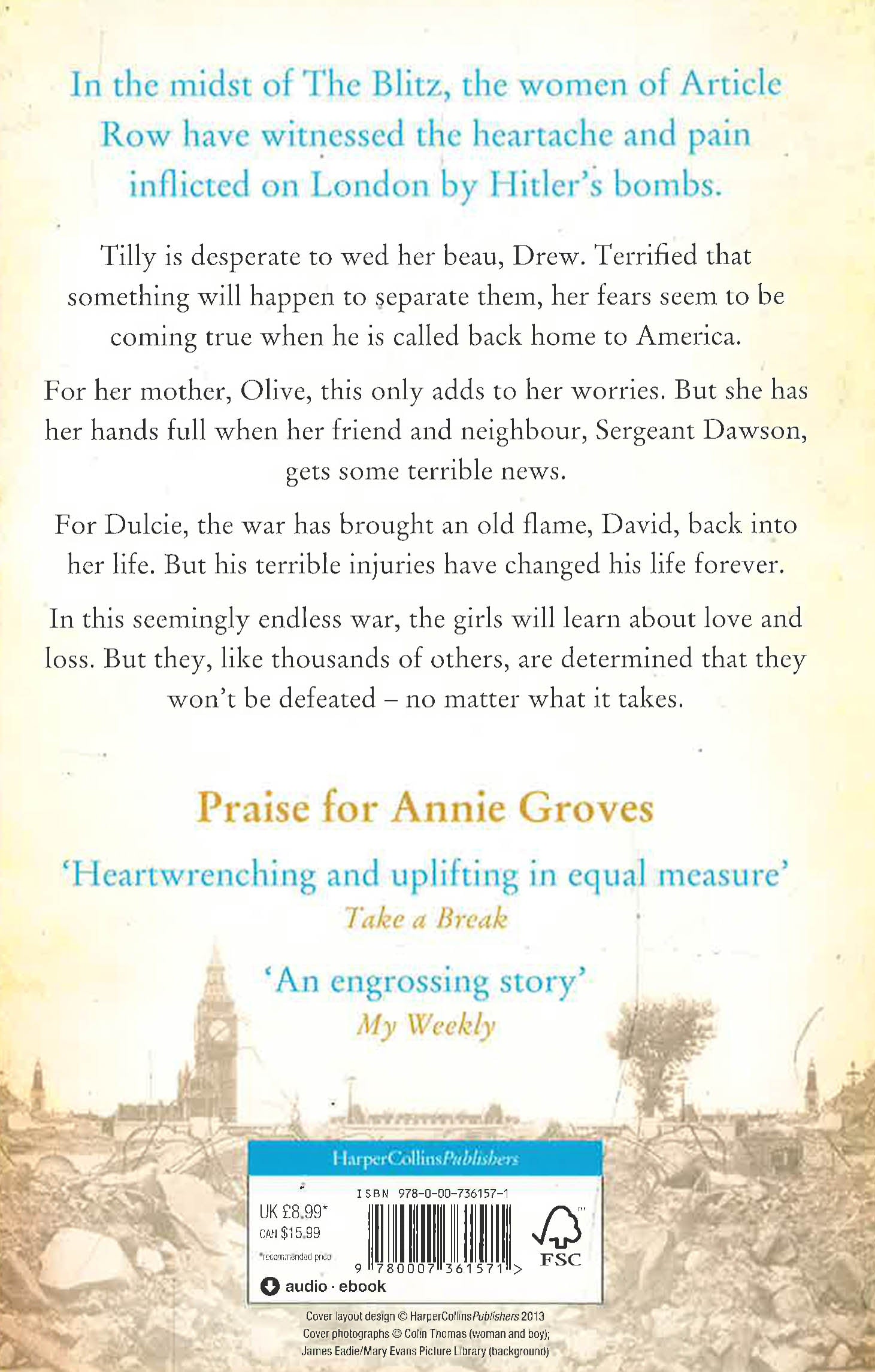 A compelling novel about four young women in wartime London, from the best-selling author of London Belles and My Sweet Valentine. In Article Row, in London's Holborn - four young women, Tilly, Sally, Dulcie and Agnes - have already been witnesses to the heartache and pain that Hitler's bombs have inflicted on ordinary Londoners.Tilly is desperate to wed her beau, Drew. Terrified that something will happen to prevent them from being together, her fears seem to be coming true when he is called back home to America.For her mother, Olive, this only adds to her worries for Tilly. But she has her own hands full when her friend and neighbour, Sergeant Dawson, gets some terrible news. When Olive lends a hand, she finds herself at the sharp end of some unwelcome gossip.For Dulcie, the war has brought an old flame, David, back into her life. But his terrible injuries have changed his life forever. Can something more develop out of their friendship? And for Agnes, she is about to find out something that will change her life, too.In this seemingly endless war, the girls will learn about love, loss and heartache. But they, like thousands of other Londoners, are determined to win the battle on the home front - no matter what it takes.
