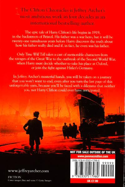 The Clifton Chronicles" is Jeffrey Archer's most ambitious work in four decades as an international bestselling author. The epic tale of Harry Clifton's life begins in 1919, in the backstreets of Bristol. His father was a war hero, but it will be twenty-one tumultuous years before Harry discovers the truth about how his father really died and if, in fact, he even was his father. "Only Time Will Tell" takes a cast of memorable characters from the ravages of the Great War to the outbreak of the Second World War, when Harry must decide whether to take his place at Oxford, or join the fight against Hitler's Germany. In Jeffrey Archer's masterful hands, you will be taken on a journey that you won't want to end, even after you turn the last page of this unforgettable yarn, because you will be faced with a dilemma that neither you, nor Harry Clifton could ever have anticipated.