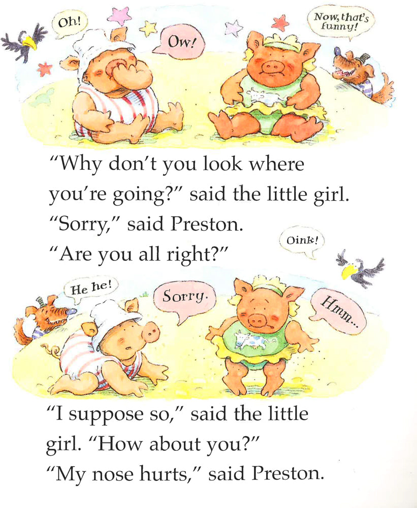 Preston Pig is off to the seaside on holiday when he bumps into Maxine - Oomph! - and falls in love! Mister Wolf is on holiday too, in search of sunshine, sea, sand...and sausages!
