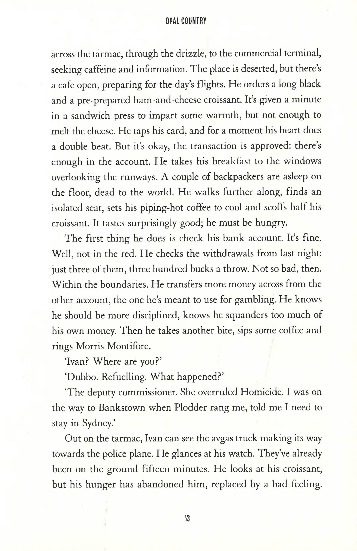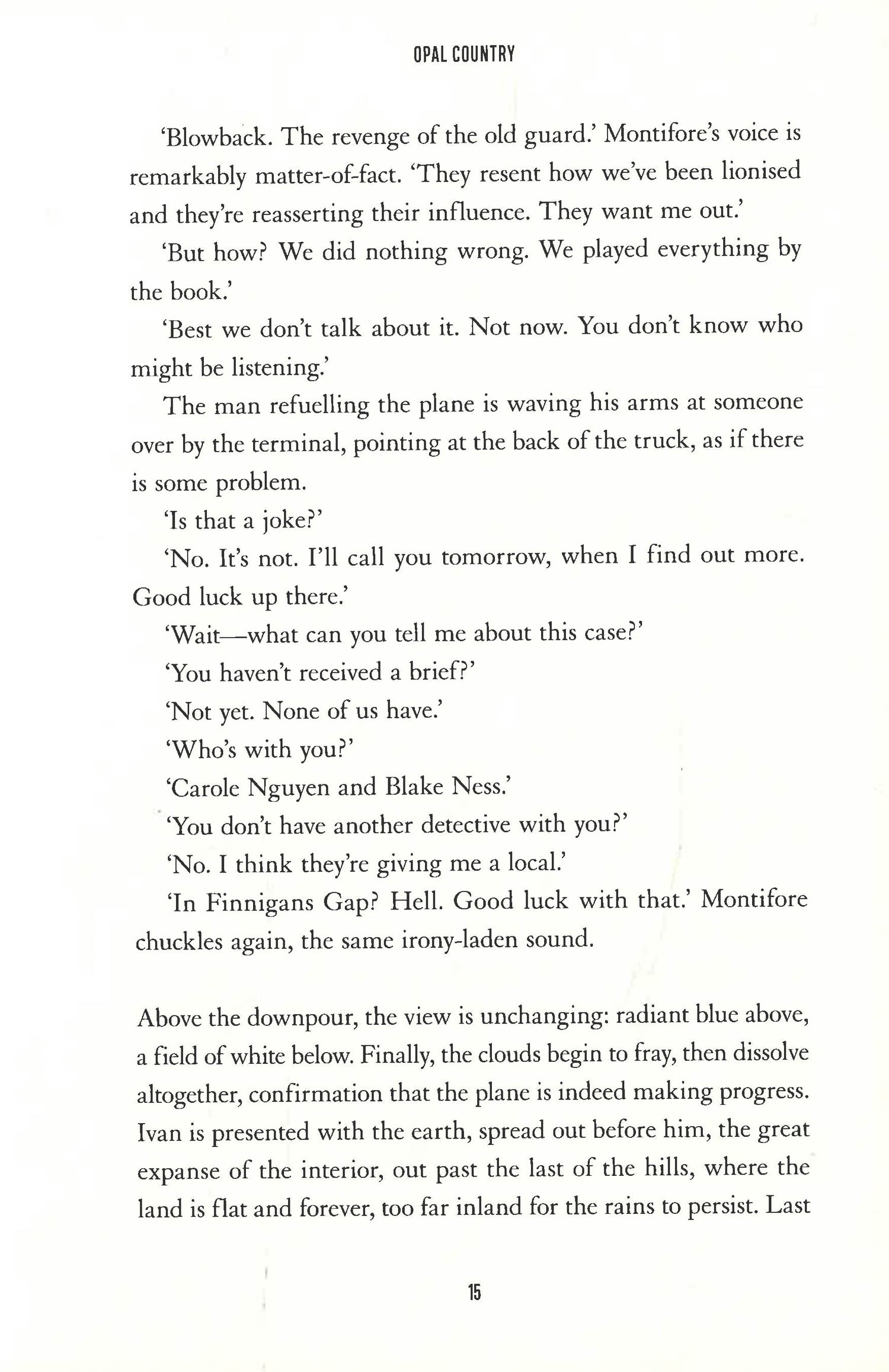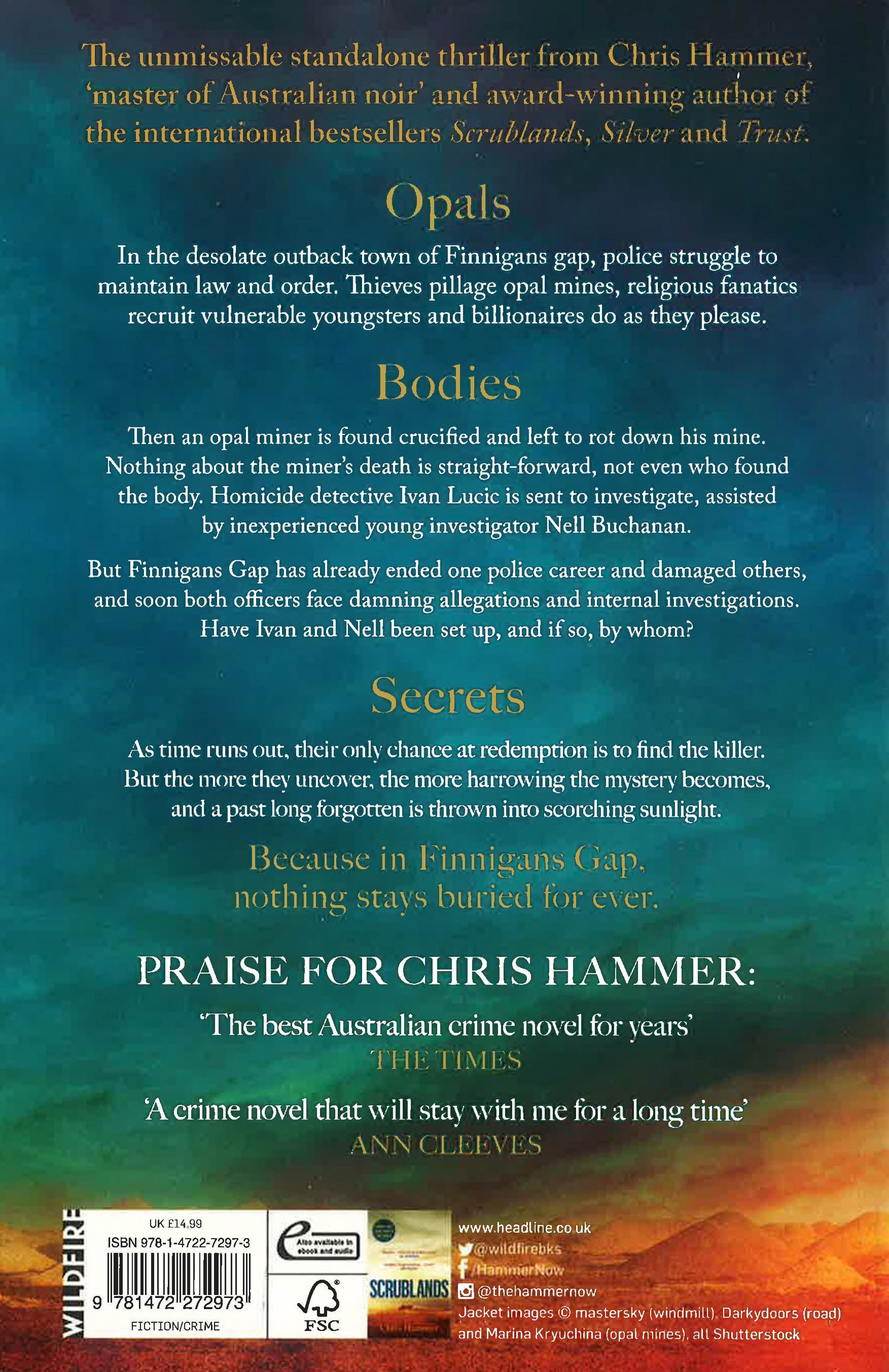 **THE TIMES CRIME BOOK OF THE MONTH** In the outback, nothing stays buried forever... 'Classic Hammer. A crime novel that will stay with me for a long time.' Ann Cleeves 'This novel is Hammer's best work yet.' The Times 'A complex, twisty thriller, with nuanced characters and a winding plot all set in the oppressive Australian heat.' Lisa Hall 'This slice of Australian noir sparkles like an opal in the blistering sun.' Lisa Gray 'Opal Country is a top-notch Aussie Noir with real heat coming off the pages.' Christopher Fowler Opals... In the desolate outback town of Finnigans Gap, police struggle to maintain law and order. Thieves pillage opal mines, religious fanatics recruit vulnerable youngsters and billionaires do as they please. Bodies... Then an opal miner is found crucified and left to rot down his mine. Nothing about the miner's death is straight-forward, not even who found the body. Homicide detective Ivan Lucic is sent to investigate, assisted by inexperienced young investigator Nell Buchanan. But Finnigans Gap has already ended one police career and damaged others, and soon both officers face damning allegations and internal investigations. Have Ivan and Nell been set up, and if so, by whom? Secrets... As time runs out, their only chance at redemption is to find the killer. But the more they uncover, the more harrowing the mystery becomes, and a past long forgotten is thrown into scorching sunlight. Because in Finnigans Gap, nothing stays buried for ever. Praise for Chris Hammer: 'Hammer is a great writer - a leader in Australian noir' Michael Connelly 'Shimmers . . . A tortured tale of blood and loss' Val McDermid 'Stunning - a page-turner which stays long in the memory' Sunday Times