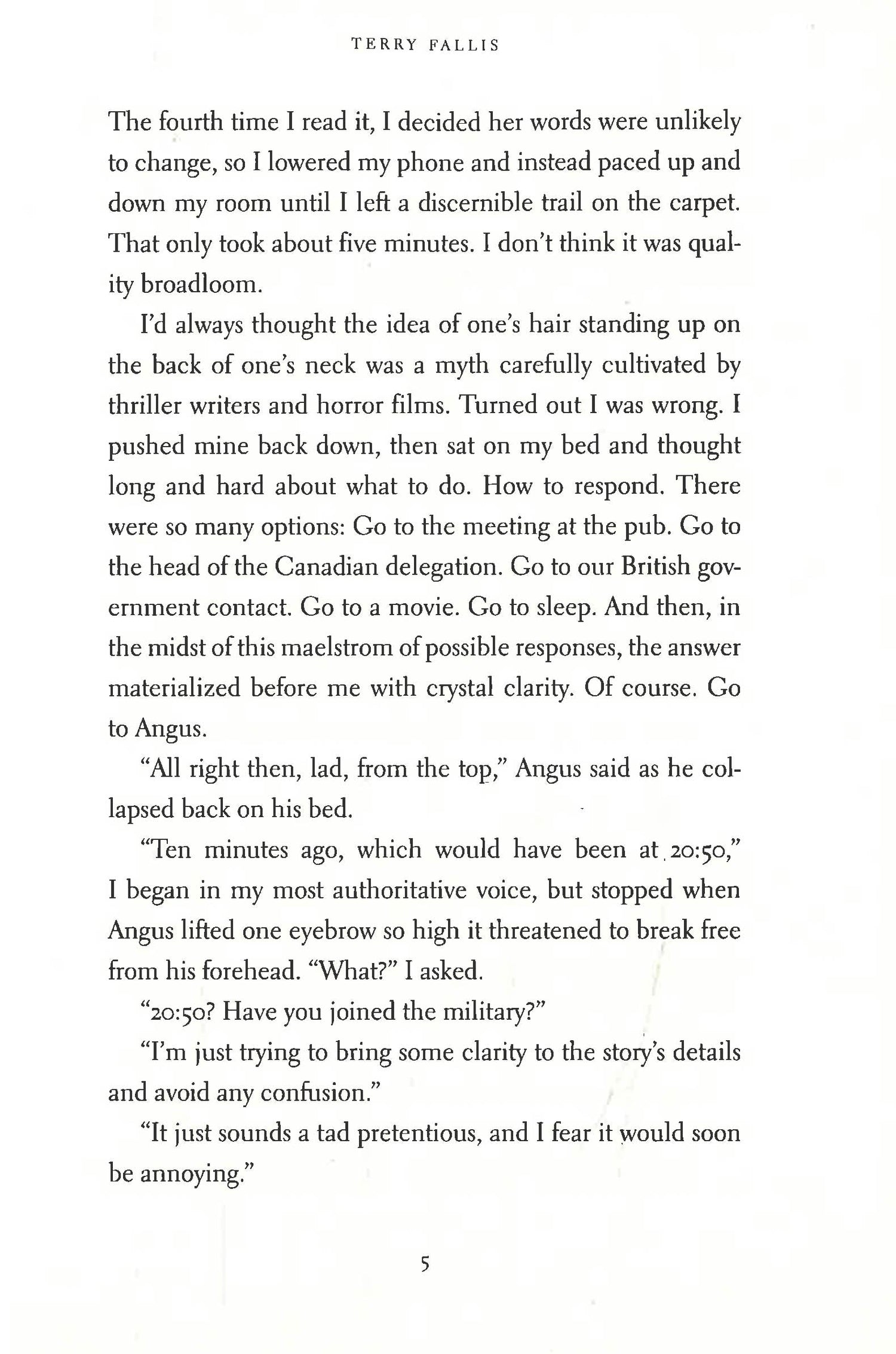 The London meetings are all going to plan until Daniel receives a cryptic, late-night text, from a burner phone, directing him to a pub around the corner from their hotel. There is important information he needs to know, the mysterious texter says—but he must keep the meeting a secret, and must come alone. Naturally, he immediately tells Angus, who of course tags along to the pub—just as reinforcement. The soon-to-be-retired MI6 agent who is waiting for Daniel is not pleased, but there are more pressing matters at hand: Chechen separatists are plotting to assassinate the Russian President—and it’s going to happen when he’s in Ottawa to meet with the Prime Minister, just weeks away. Angus and Daniel have to put a stop to it before it's too late. Naturally, no one in Ottawa will take them, or their top-secret intelligence, seriously, so they’re on their own.