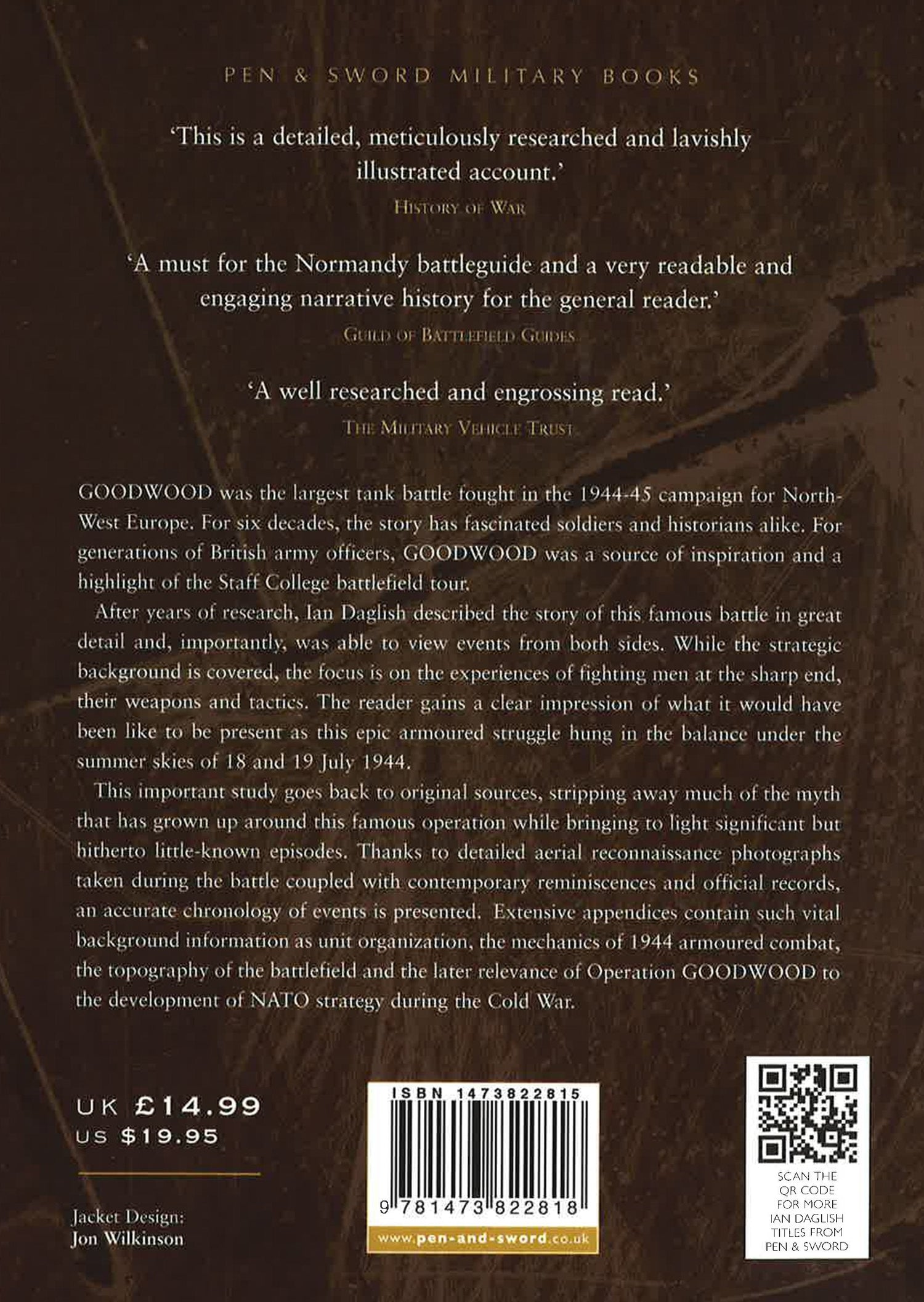 For the first book in our new series Over The Battlefield, we have chosen Ian Daglish to describe the events of Operation GOODWOOD, July 1944, the dramatic attempted British armoured break-out from the Normandy bridge-head. This was the greatest armoured battle undertaken by the British during the Second World War. What is so special about this book is the discovery and use of superb aerial photos taken during the fighting by the RAF. This amazing imagery makes it possible to trace the course of the battle and to track the movement of the armoured regiments and troops of both sides. The effect is sensational and the reader is able to follow history in the making.
