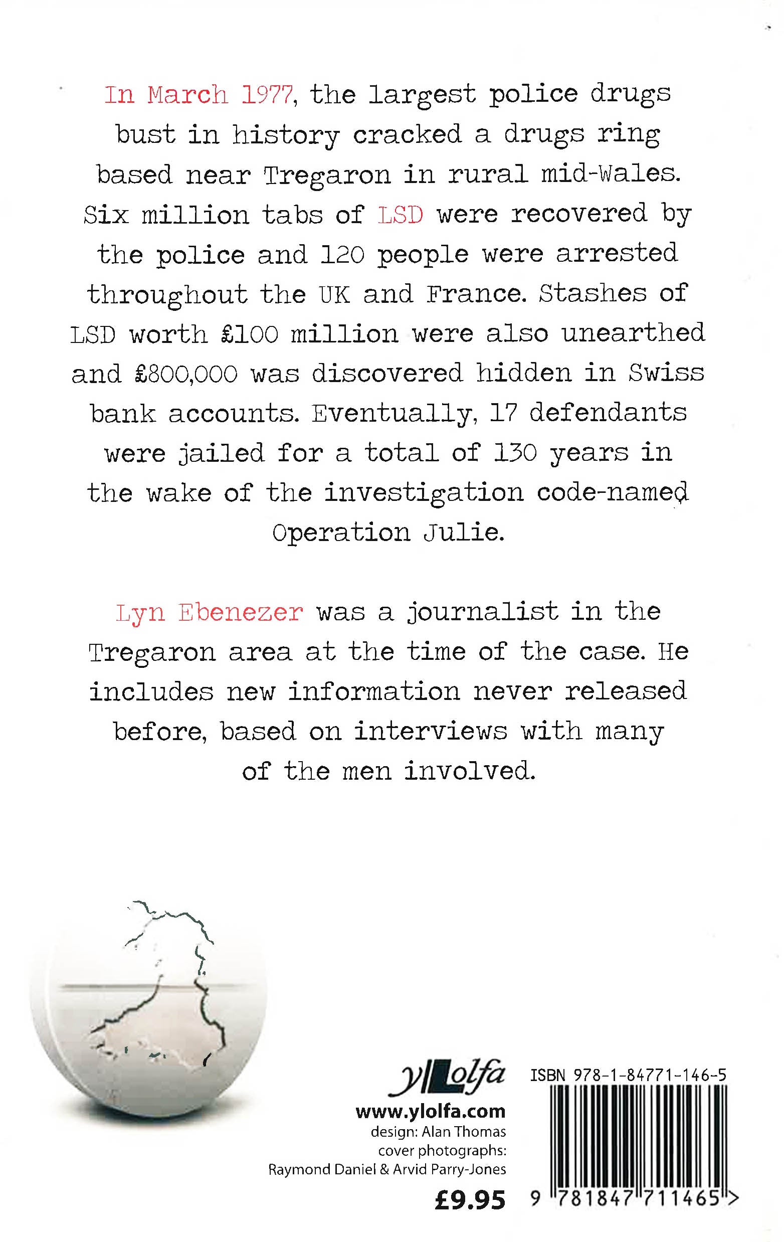 In March 1977, the largest police drugs bust in history cracked a drugs ring based near Tregaron in rural mid-Wales. Six million tabs of LSD were recovered by the police and 120 people were arrested throughout the UK and France. Stashes of LSD worth 100 million pounds were also unearthed and 800,000 pounds were discovered hidden in Swiss bank accounts. Eventually, 17 defendants were jailed for a total of 130 years in the wake of the investigation code-named Operation Julie. Lyn Ebenezer was a journalist in the Tregaron area at the time of the case. He includes new information never released before, based on interviews with many of the men involved.