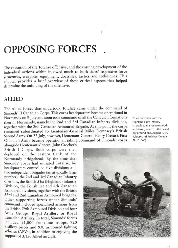 In Operation Totalize, Lieutenant-General Guy Simonds' II Canadian Corps launched an attack from its positions along the Bourguebus Ridge south of Caen, striking south-southeast astride the main Caen-Falaise road toward the high ground that dominated the town of Falaise and the key west-east lateral road that ran through this town. Using sophisticated operational art the initial break-in achieved rapid success; indeed, more tactical success than any previous Allied break-in attack in Normandy. However, despite this rapid initial success, Totalize did not subsequently secure a decisive operational-level victory. Indeed, Simonds' forces subsequently struggled swiftly to complete the second break-in battle, and to transit into rapid exploitation operations. Had Simond's force been successful the German army may not have been able to extract themselves from the Falaise pocket and would have been surrounded and defeated - possibly bringing about the early end of the war in Europe.