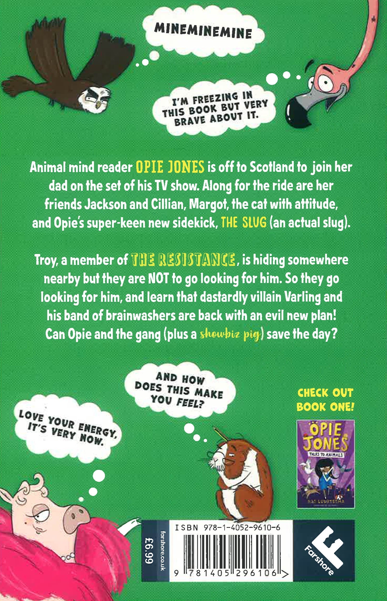 Dr Dolittle meets Kid Normal in a hilarious middle grade superhero series that tells you what your pets are really thinking, from Bafta-nominated comedian Nat Luurtsema In her second hilarious adventure, animal mindreader Opie Jones is off to Scotland to join her dad on the set of his Scottish medical TV show, Highland Docs, accompanied by friends Jackson and Cillian, as well as Margot, the cat with attitude, and Opie's super-keen new sidekick, Slug (an actual slug). But before they get the chance to try out their acting skills, dastardly villain Varling and his band of brainwashers are back with an evil new plan! Can Opie and the gang (plus a showbiz pig) save the day? Perfect for 8+ fans of Charlie Changes into a Chicken, My Brother is a Superhero, Frank Cottrell Boyce and David Baddiel