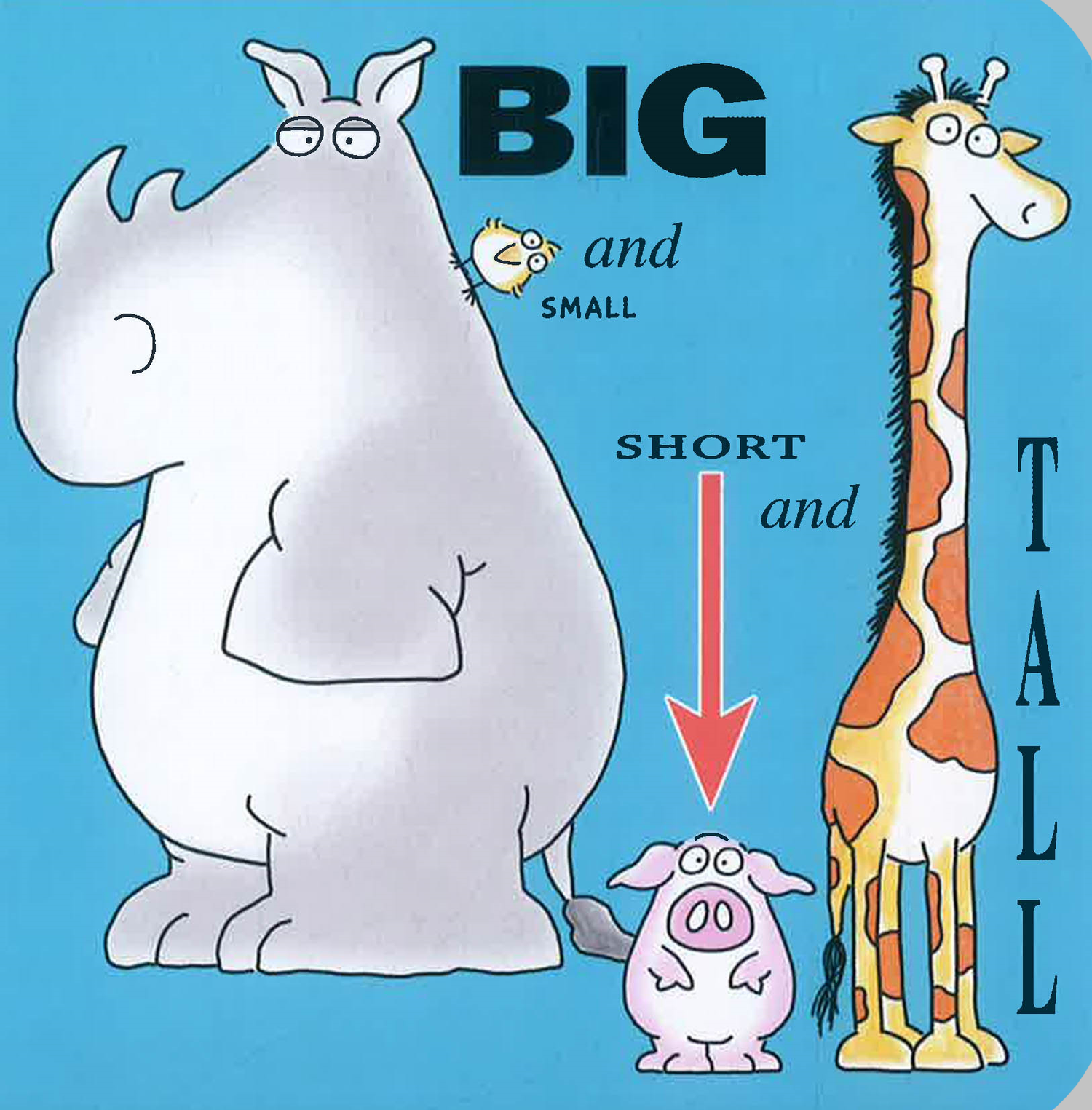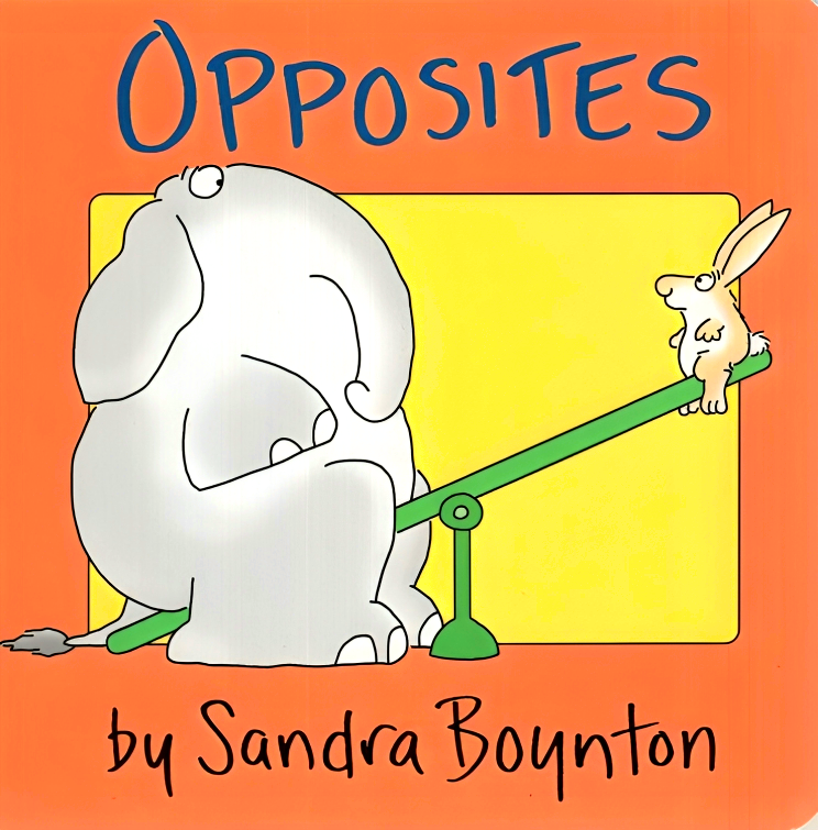 Boynton's delightful rhyming text and whimsical cast of animal characters, who play on a teeter totter, lift weights, talk on the phone, and hide under umbrellas, perfectly complement the concept of opposites while introducing little readers to new words and juxtaposing ideas.