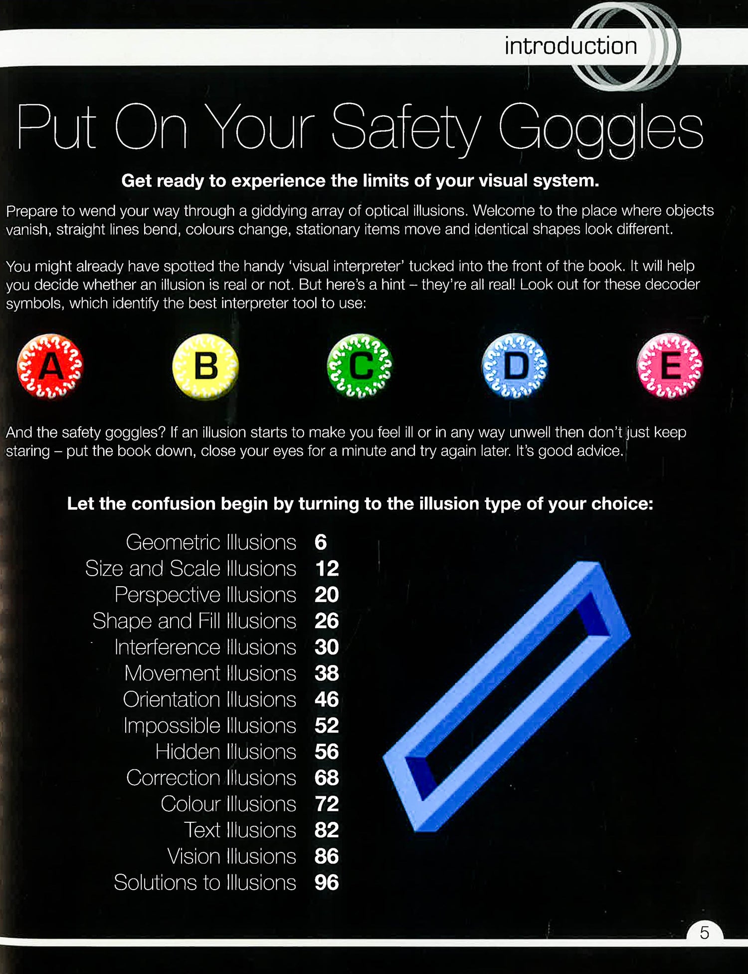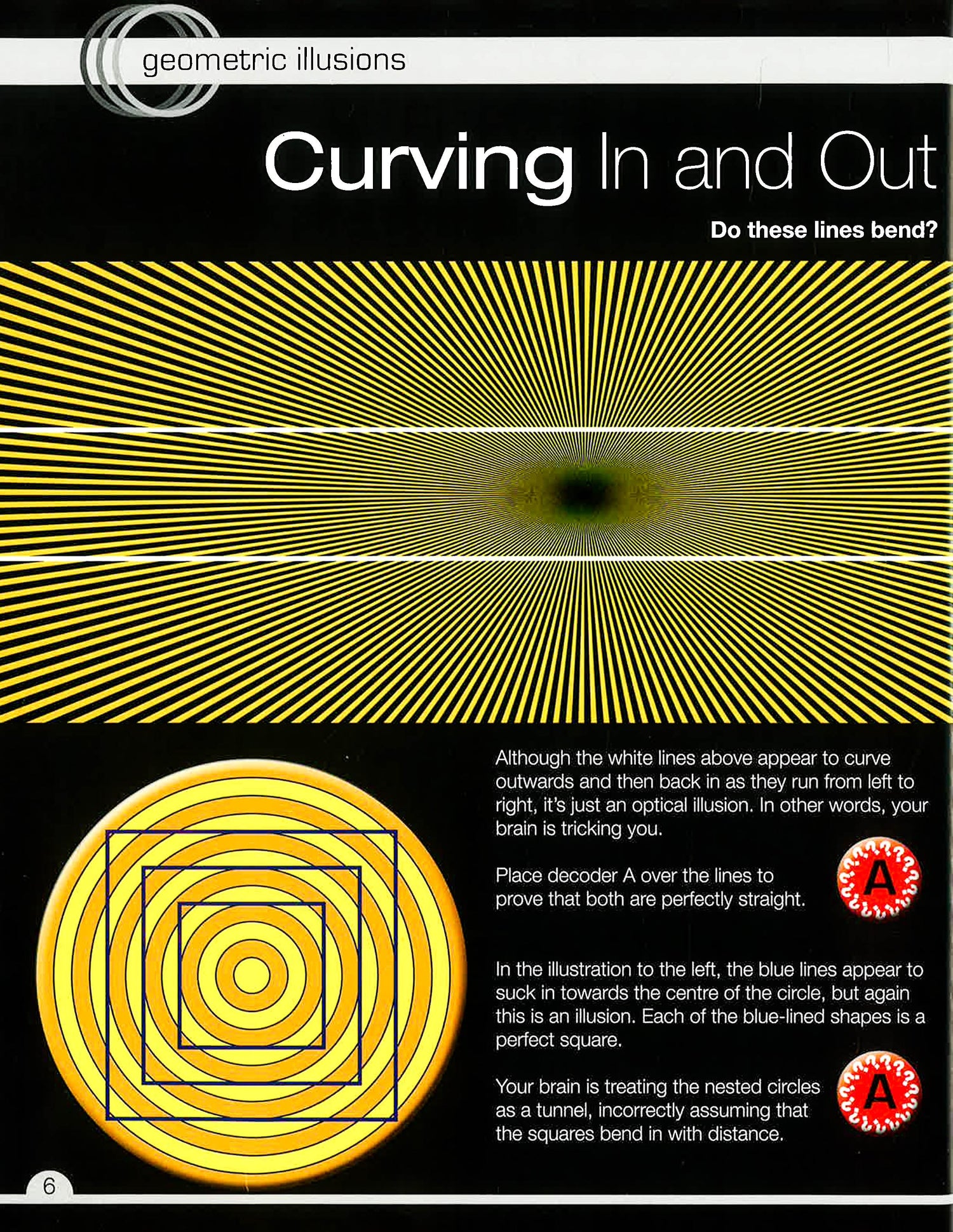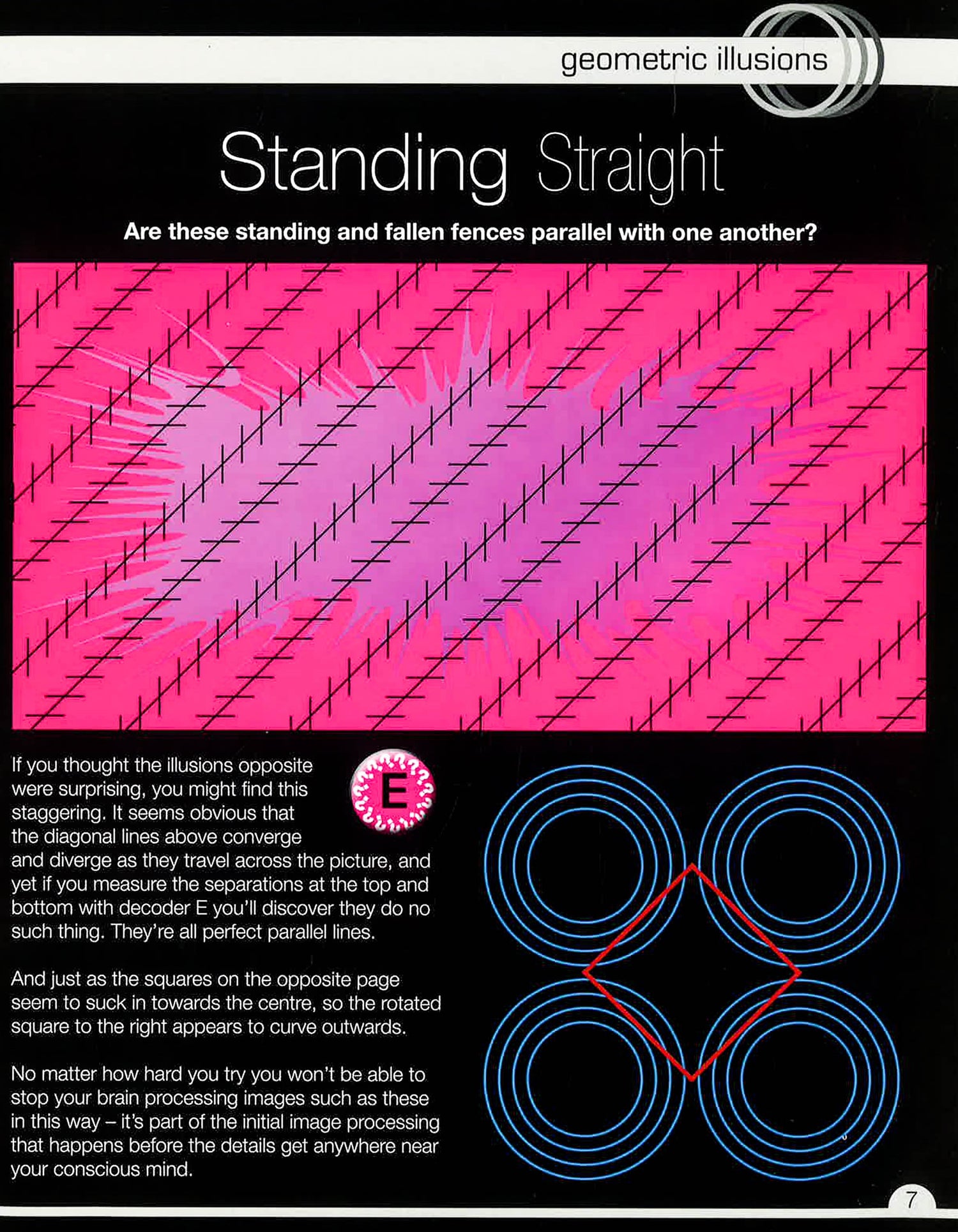 Packed from cover to cover with a huge range of brand new optical illusion, you'll find out a dizzying variety of visual conundrums on every page of this book. It?s a place where objects vanish right in front of your eyes, straighy lines start to bend and stationery items get up and slide around the page.To make sense of these strange phenomena a handy visual interpreter is included with a key so you know which section too use on each puzzle. It will reveal colours that change and shapes that alter in size, helping you make sense of what your brain can't process. Over 150 illusions have been arranged into thirteen highly varied chapters, each featuring a wide range of optical miracles.