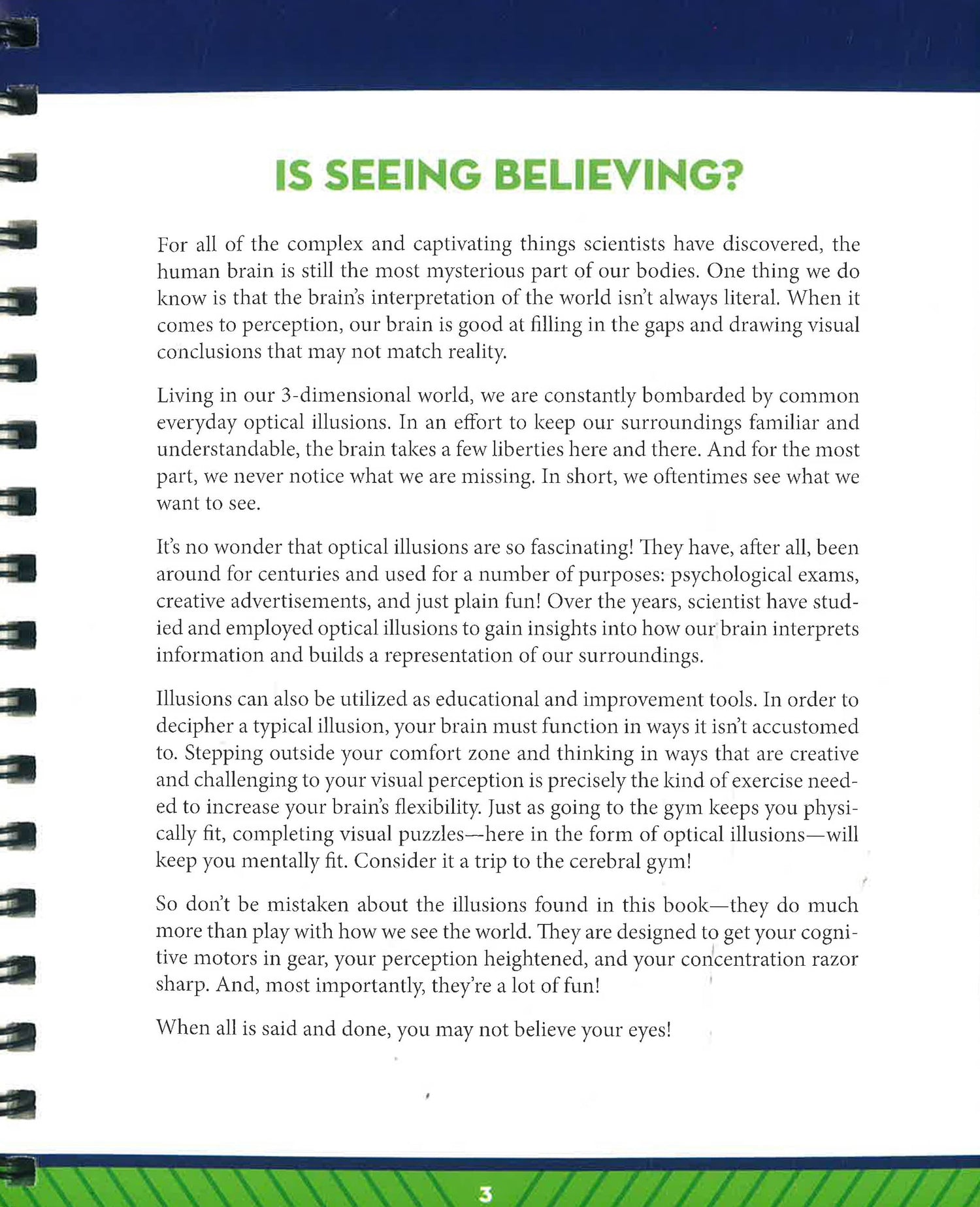 A new, colorful collection of more than 130 visual illusions and brain teasers found in three of DK's award-winning Optical Illusions , Mindbenders , and Color Illusions .Fantastic Optical Illusions is filled with visual illusions, color tricks, perplexing puzzles, quizzes, and more. In this mind-bending book, each puzzle is framed as a question that prompts young readers to look for or do something specific and even includes an explanation of how the illusion works, so kids won't be confused for too long.Engaging and entertaining, this activity book is the perfect gift for someone of any age.Series DK's Optical Illusions series is filled with brain-teasing and mind-bending images. The series is aimed at children who love brain teasers, but it's irresistible for puzzle fiends of all ages. Other books in the series Optical Illusions , Mindbenders , Color Illusions , SENSEational Illusions , and The Magic Show Book .