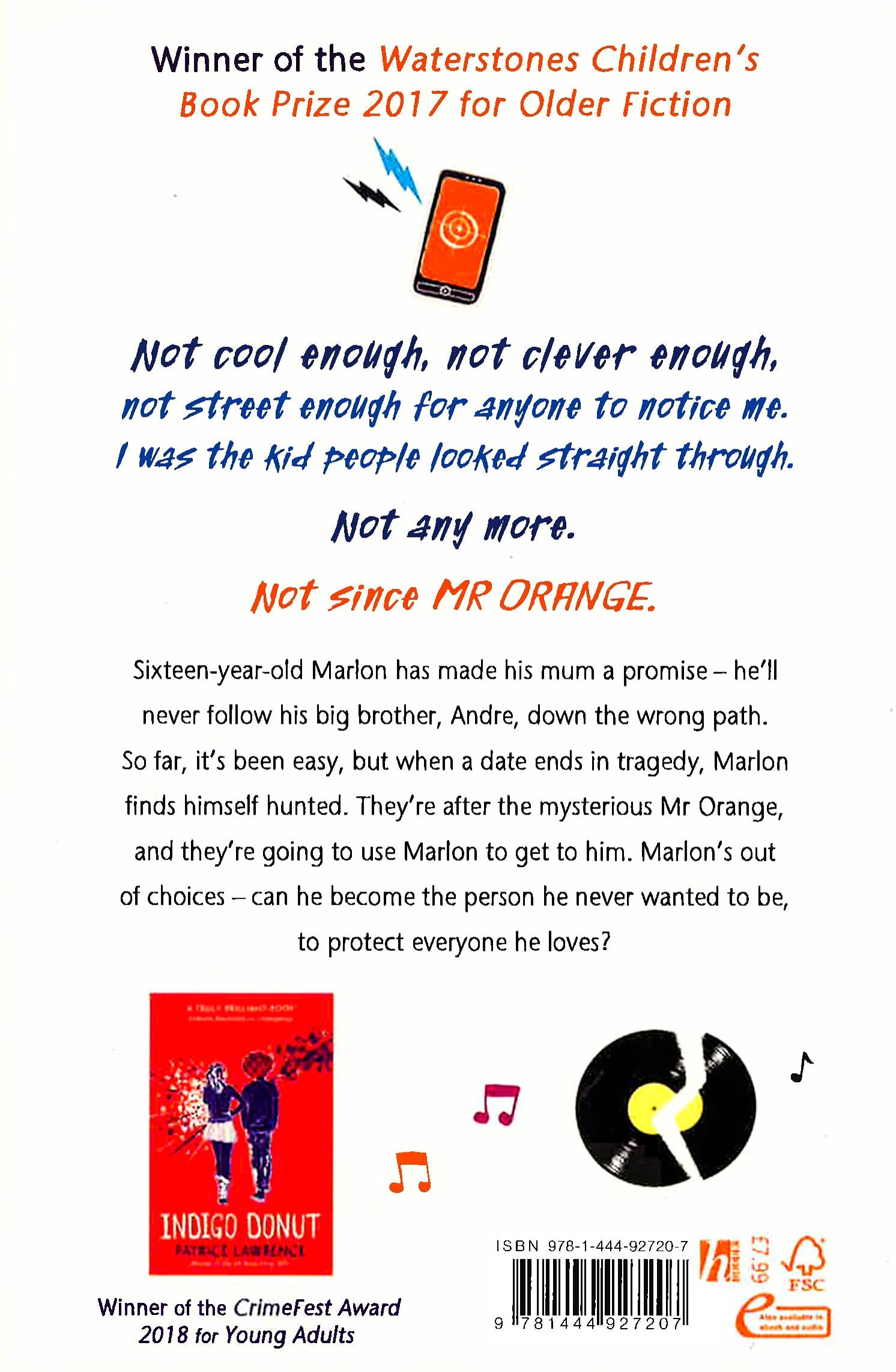 Sixteen-year-old Marlon has made his mum a promise - he'll never follow his big brother, Andre, down the wrong path. So far, it's been easy, but when a date ends in tragedy, Marlon finds himself hunted. They're after the mysterious Mr Orange, and they're going to use Marlon to get to him. Marlon's out of choices - can he become the person he never wanted to be, to protect everyone he loves?