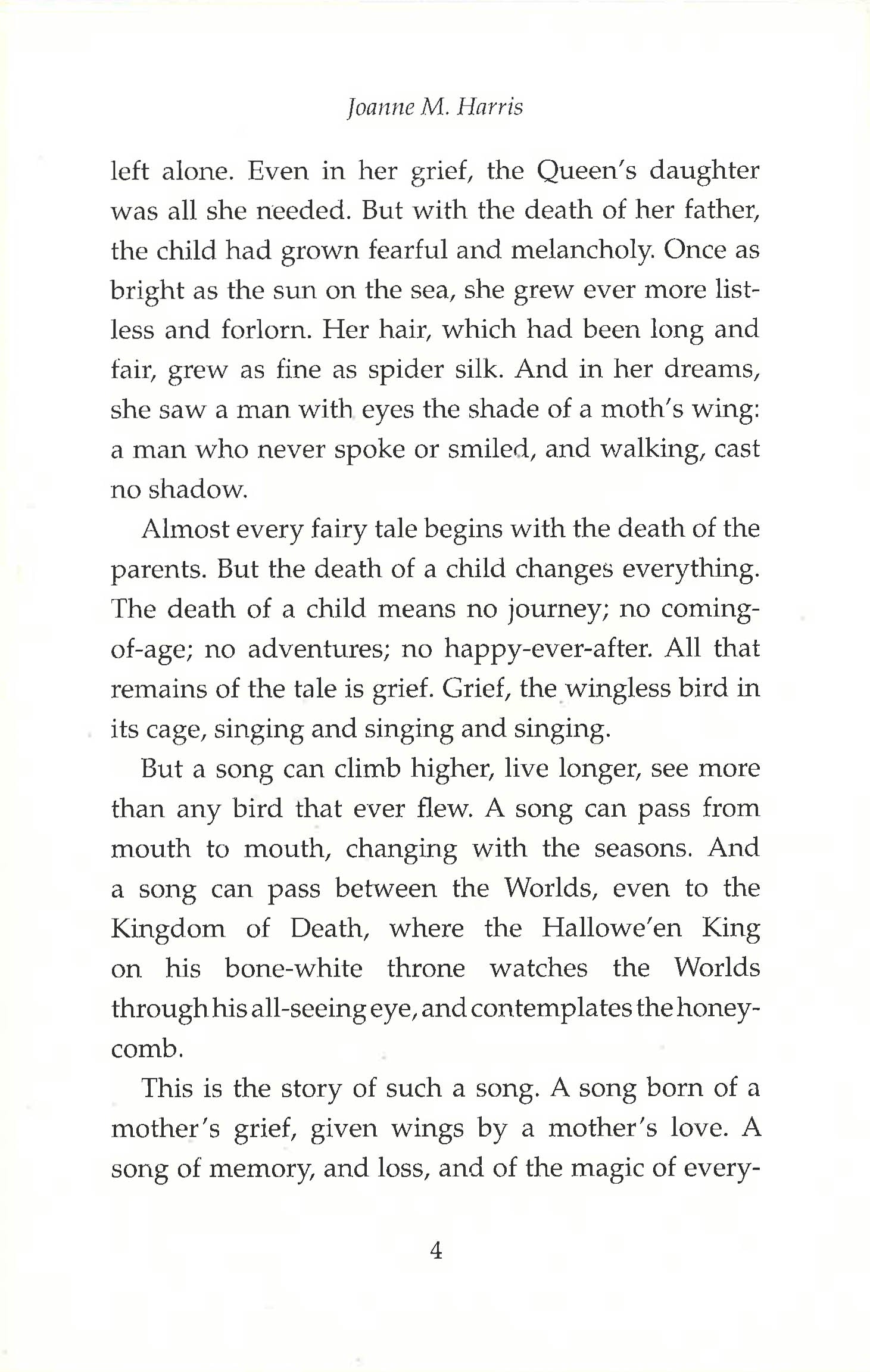 Take a deep breath and immerse yourself in this stunning new novella from #1 Bestselling author Joanne Harris.When you can find me an acre of land,Every sage grows merry in time,Between the ocean and the sandThen will you be united again.(Inspired by The Child Ballads 2 & 19)So begins a beautiful and tragic quest as a heartbroken mother sets out to save her lost daughter, through the realms of the real, of dream, and even into the underworld itself.But determination alone is not enough. For to save something precious, she must give up something precious, be it a song, a memory, or her freedom itself . . .Beautifully illustrated by Bonnie Helen Hawkins, this is a stunning and original modern fairytale.