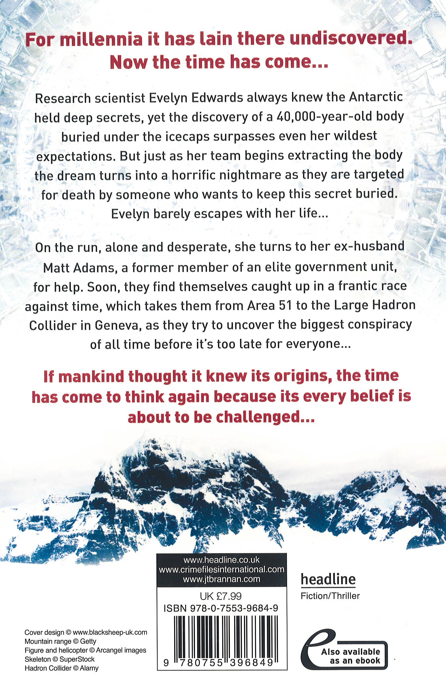For millennia it has lain there undiscovered. Now the time has come...Research scientist Evelyn Edwards always knew the Antarctic held deep secrets but the discovery of a 40,000 year old body buried under the ice caps surpasses even her wildest expectations. But just as her team begins extracting the body the dream turns into a horrific nightmare as they are targeted for death by someone who wants to keep this secret buried. Evelyn barely escapes with her life...On the run, alone and desperate, she turns to her ex-husband Matt Adams, a former member of an elite government unit, for help. Soon, they find themselves caught up in a frantic race against time, which takes them from Area 51 to the Large Hadron Collider in Geneva, as they try to uncover the biggest conspiracy of all time before it's too late for everyone...If mankind thought it knew its origins, the time has come to think again because its every belief is about to be challenged...
