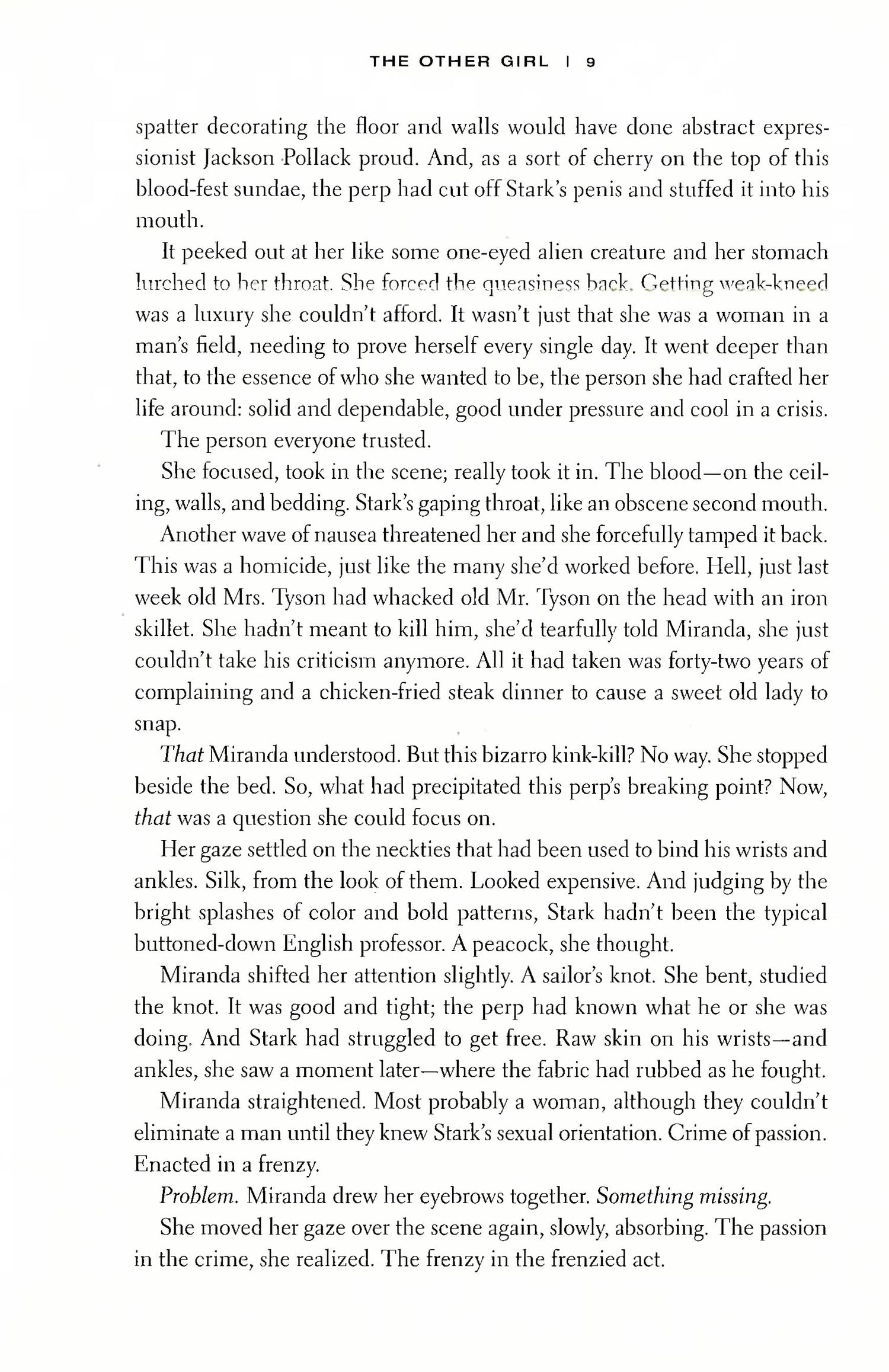 Then another man turns up dead, this one a retired cop. Not just any cop: the one who took her statement that night. Two murders, two very different men, two killings that on the surface have nothing in common. Except Miranda.