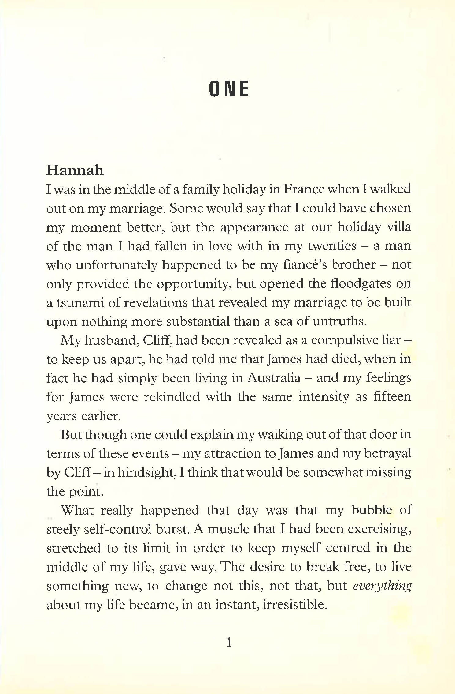Hannah and Cliff's marriage is over. After a traumatic family holiday, Cliff's lies have been exposed and Hannah has been reunited with her lost love, Cliff's brother, James. But after fifteen years together, and forever bound by love for their eleven-year-old son, Luke, breaking free and starting again seems impossible. A new life in Australia with James beckons for Hannah - but can she embark on this adventure without losing the love of her son? And can Cliff finally face up to issues he has suppressed since adolescence and find happiness in a confusing world? Amid the turmoil of separation, and with Luke caught in the crossfire, both Hannah and Cliff face the challenge of rebuilding their lives. To make the other halves of their lives count, theyneed courage and determination. But perhaps it's more than they possess ...