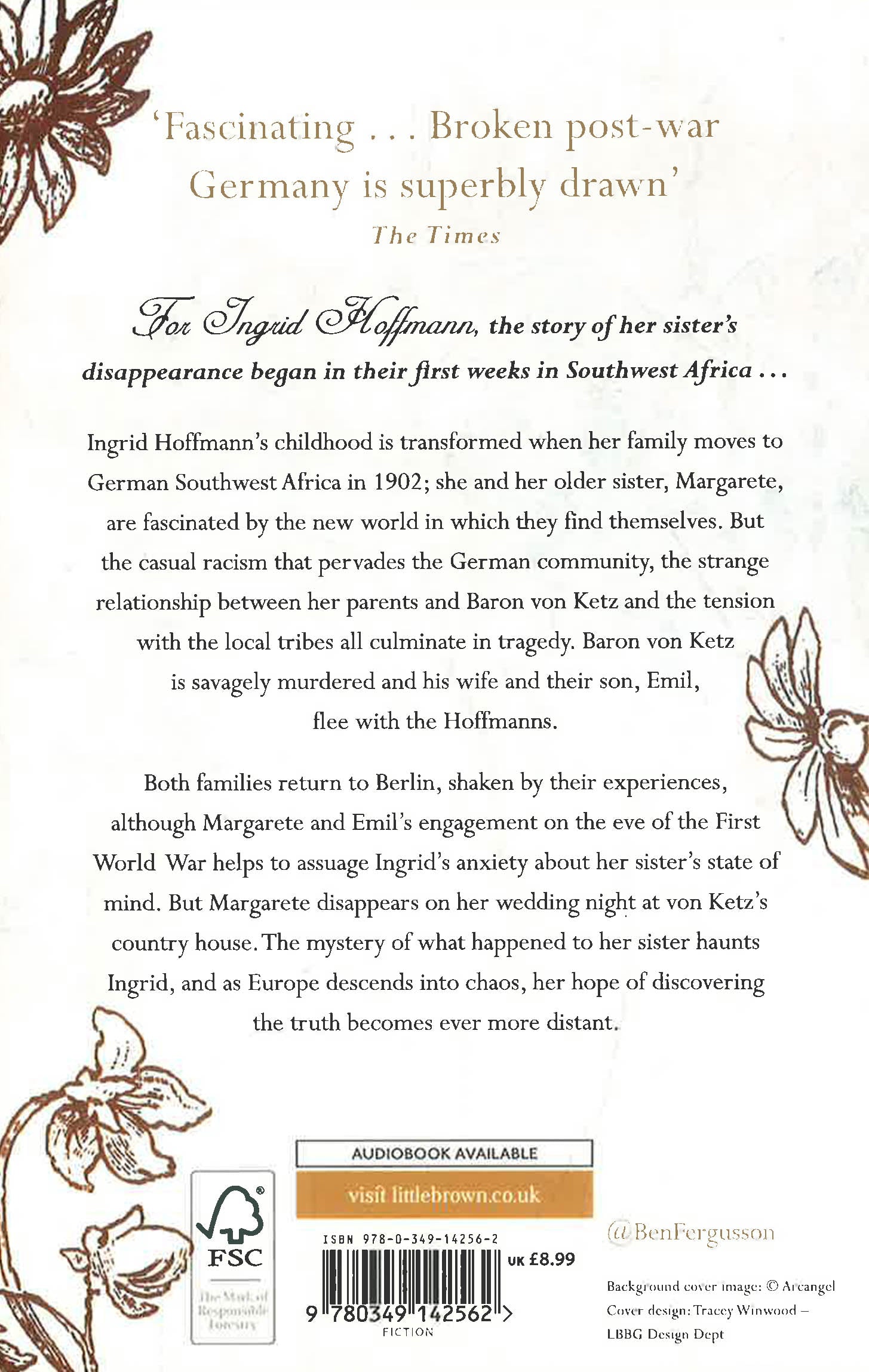 Both families return to Berlin and Ingrid's concerns about Margarete are assuaged when she and Emil von Ketz become engaged on the eve of the First World War. But Margarete disappears on her wedding night at the von Ketz's country house. The mystery of what happened to her sister haunts Ingrid, but as Europe descends into chaos, her hope of discovering the truth becomes ever more distant.