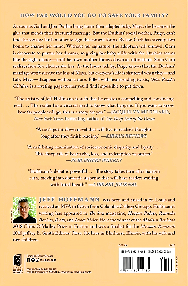 In Other People’s Children, three mothers make excruciating choices to protect their families and their dreams—choices that put them at decided odds against one another. You will root for each one of them and wonder just how far you’d go in the same situation. This “heartbreakingly dark, suspenseful exploration” (Cara Wall, bestselling author of The Dearly Beloved) of love and family is a heart-pounding page-turner you’ll find impossible to put down.