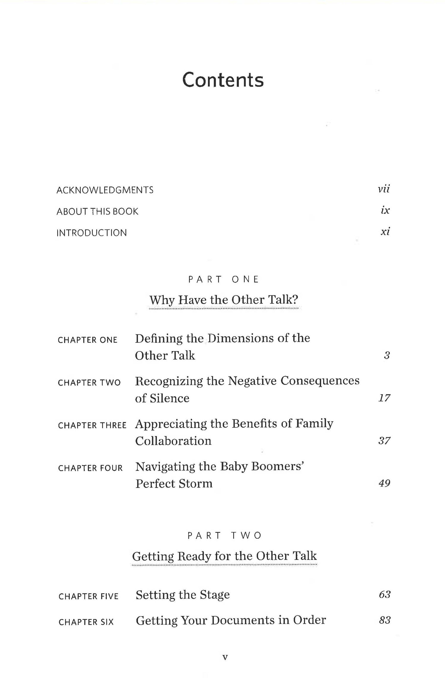 Unlike other books that help adult children who are suddenly thrust into a decision-making role, The Other Talk gives you the tools to develop a strong partnership with your kids to plan for the rest of your life.