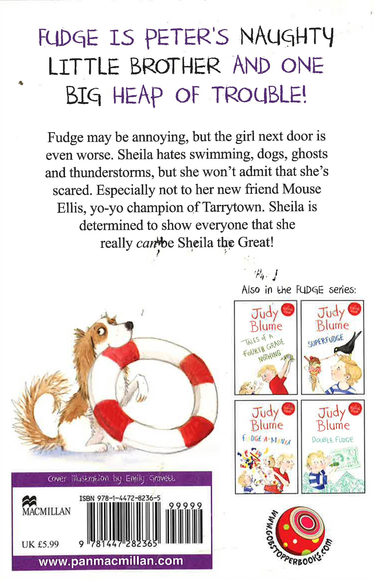 Sheila Tubman (Peter Hatcher's sworn enemy) sometimes wonders who she really is: the outgoing, witty, and capable Sheila the Great, or the secret Sheila, who's afraid of spiders, the dark, swimming and, most of all, dogs.