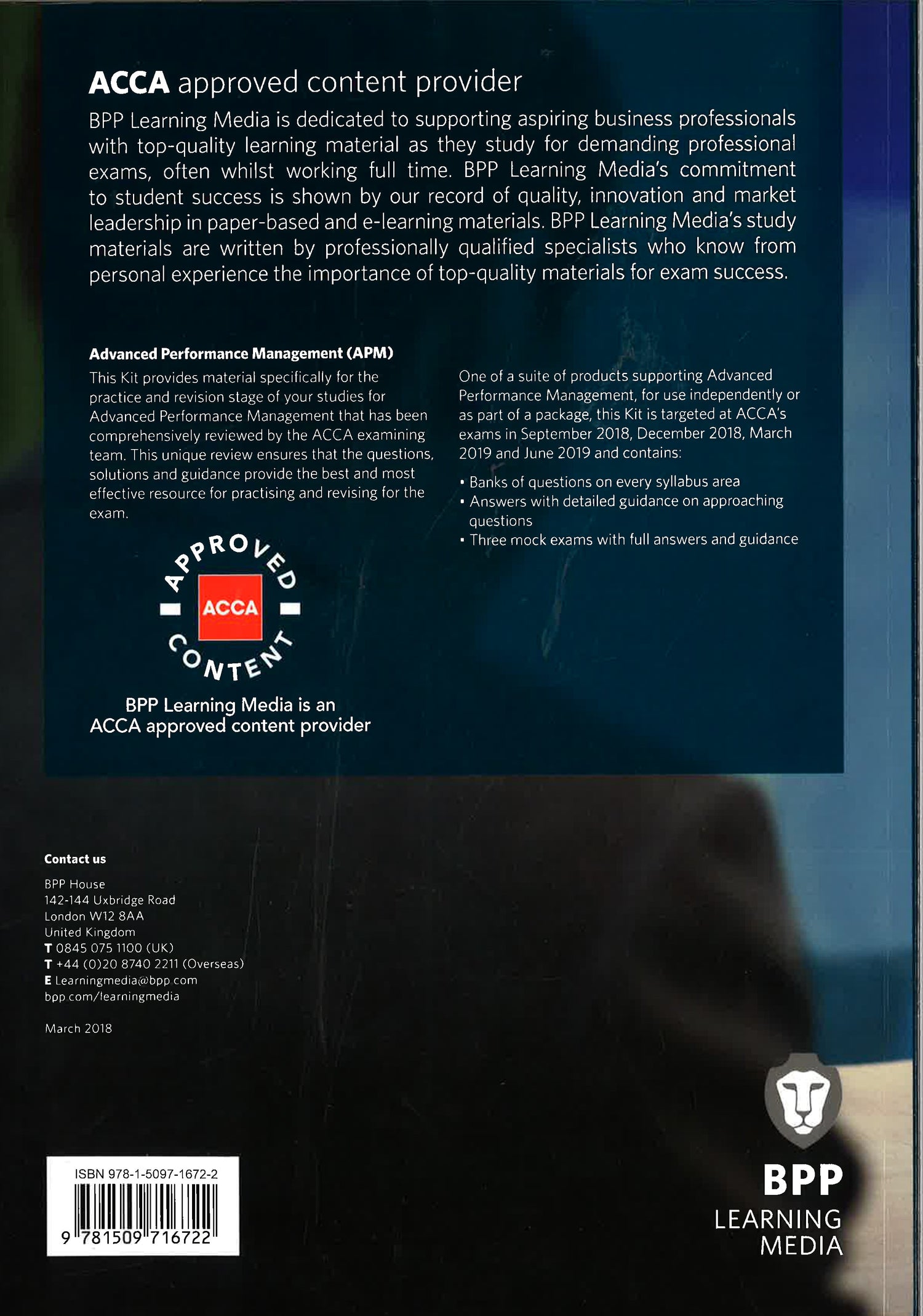 Suitable for exams from September 2018 until August 2019BPP Learning Media is an ACCA approved content provider. Our suite of study tools will provide you with all the accurate and up-to-date material you need for exam success.