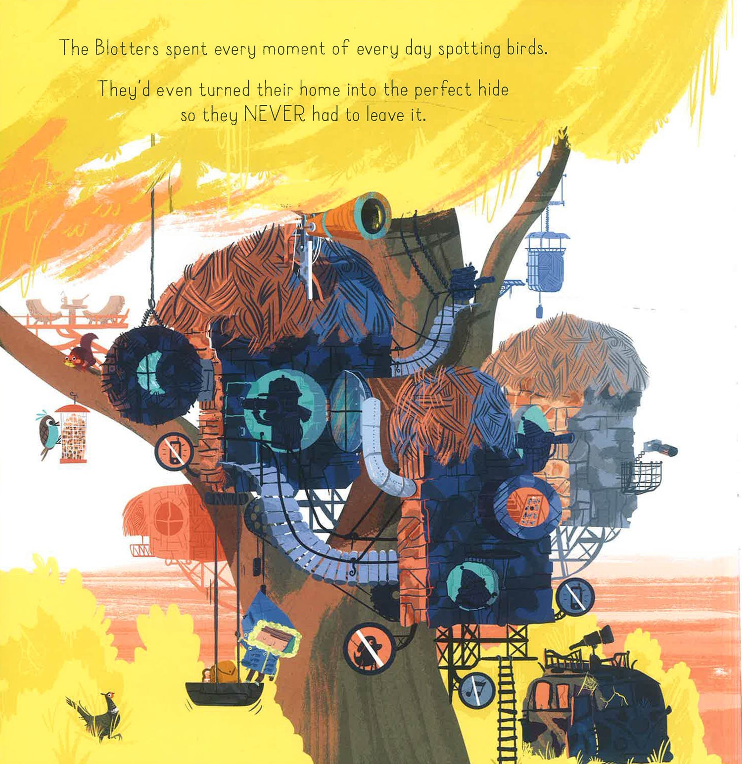 The Blotter family are famous bird spotters, who stay in their hide all day. All except for Otto – he’d rather go out and have big adventures. When he follows the BIGGEST footprints he’s ever seen, he finds an extraordinary baby bird all on its own. Otto's new friend soon reveals a very special ability: camouflage! But the bird keeps growing and growing, and Otto begins to suspect it may have a family after all... perhaps the time has come to take him home? Keen-eyed readers may spot the bird’s giant family hidden on the pages, if they're good enough bird spotters!