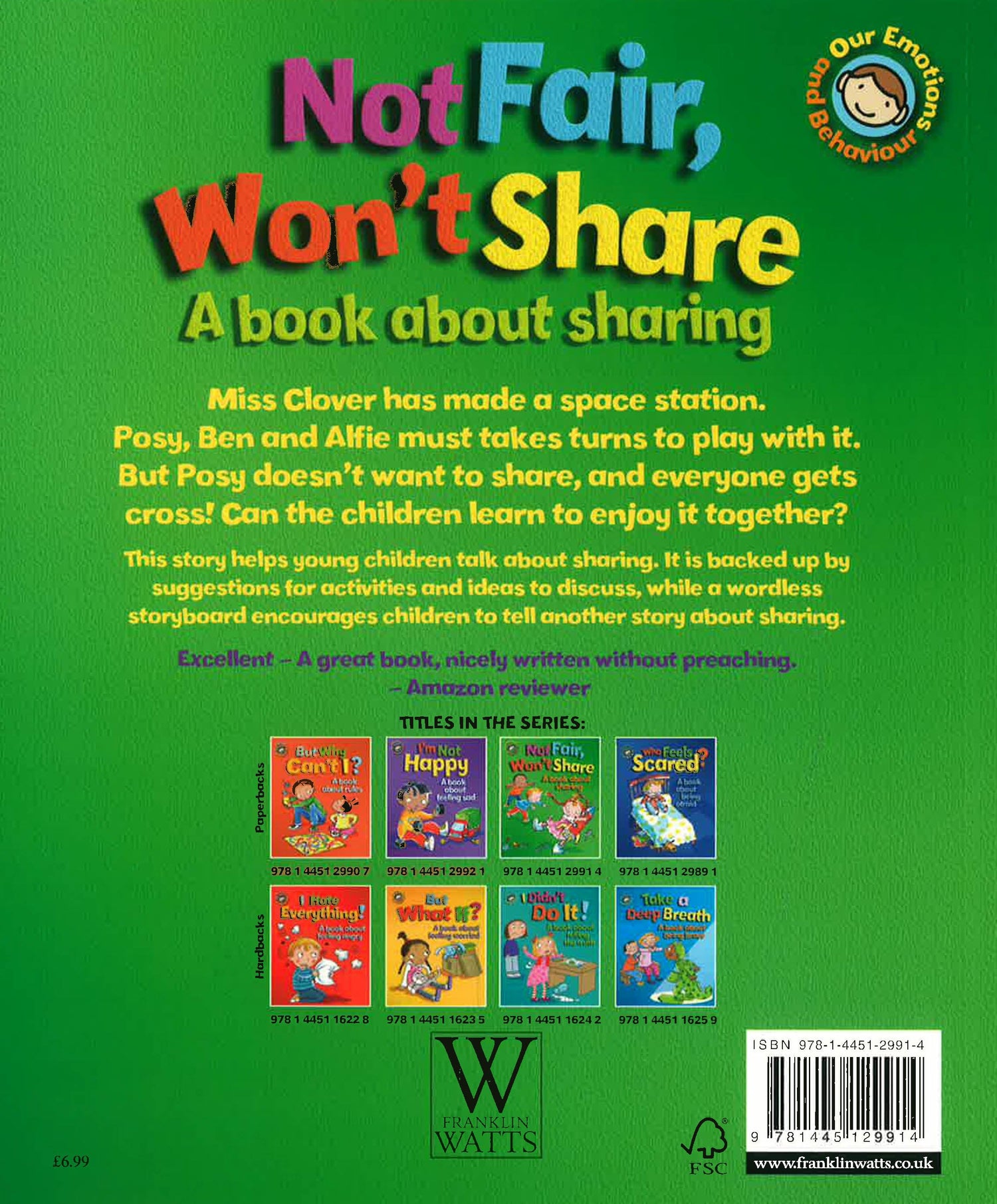 Miss Clover has made a space station. Posy, Ben and Alfie must take turns to play with it. But Posy doesn't want to share, and everyone gets cross. Can the children learn to enjoy it together?This series introduces young children to different aspects of our emotions and behaviour. A fictional story is backed up by suggestions for activities and ideas to talk about, while a wordless storyboard encourages children to tell another story related to the subject, encouraging speaking and listening skills.Supports the Personal, Social and Emotional Development Area of Learning in the Early Years Foundation Stage.