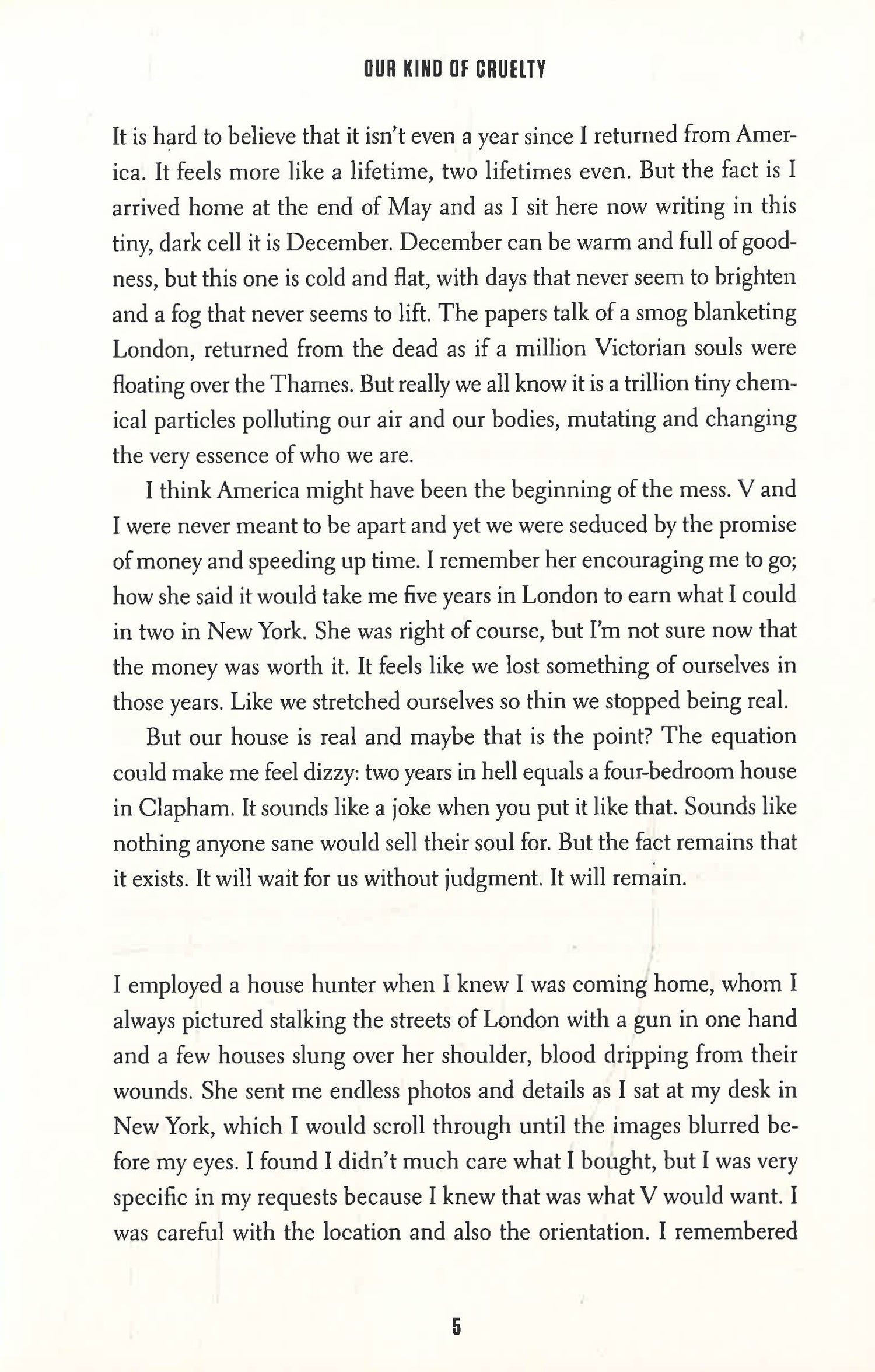 A spellbinding, darkly twisted novel about desire and obsession, and the complicated lines between truth and perception, Our Kind of Cruelty introduces Araminta Hall, a chilling new voice in psychological suspense.