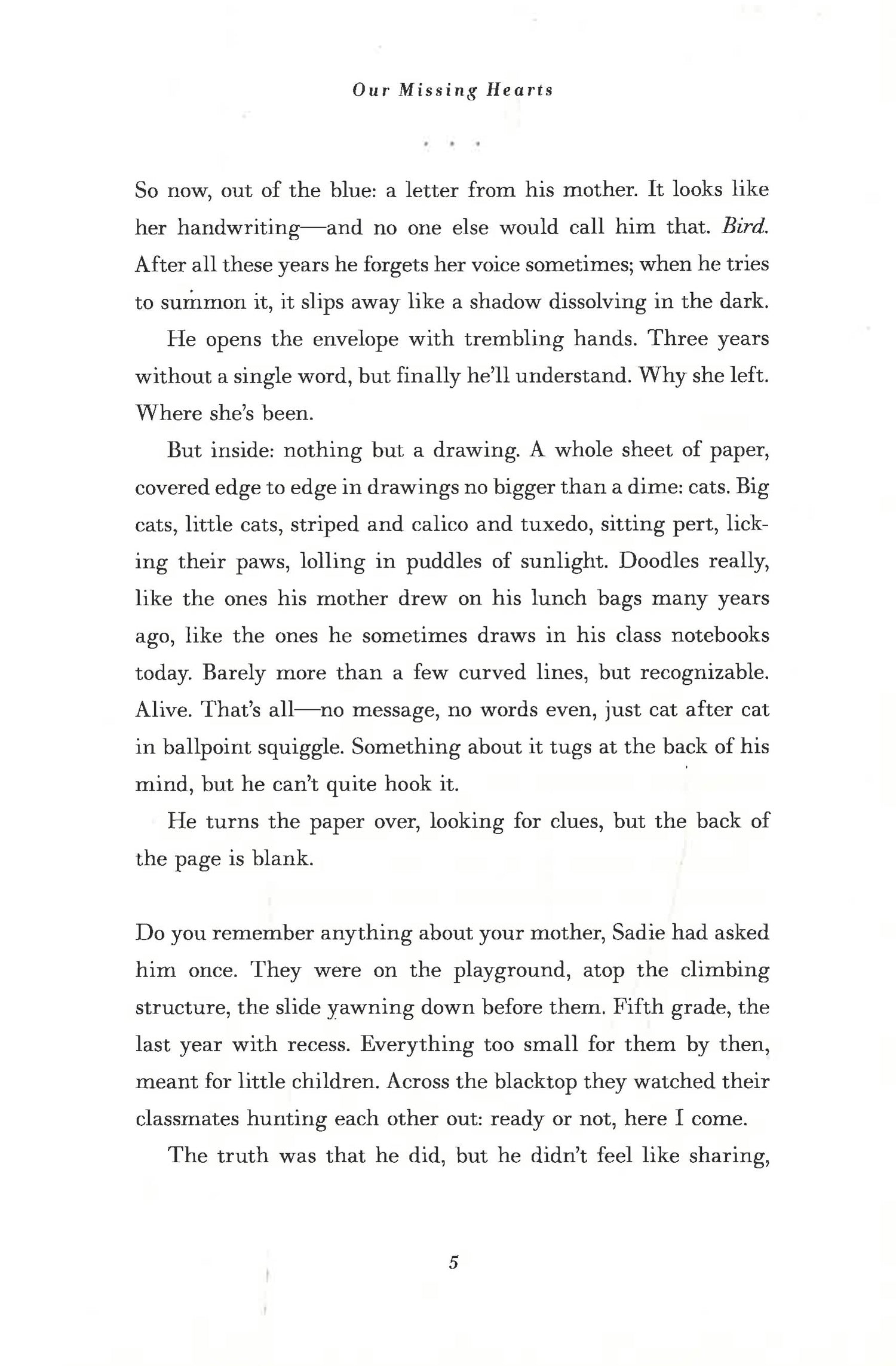 Our Missing Hearts is an old story made new, of the ways supposedly civilized communities can ignore the most searing injustice. It’s a story about the power—and limitations—of art to create change, the lessons and legacies we pass on to our children, and how any of us can survive a broken world with our hearts intact.