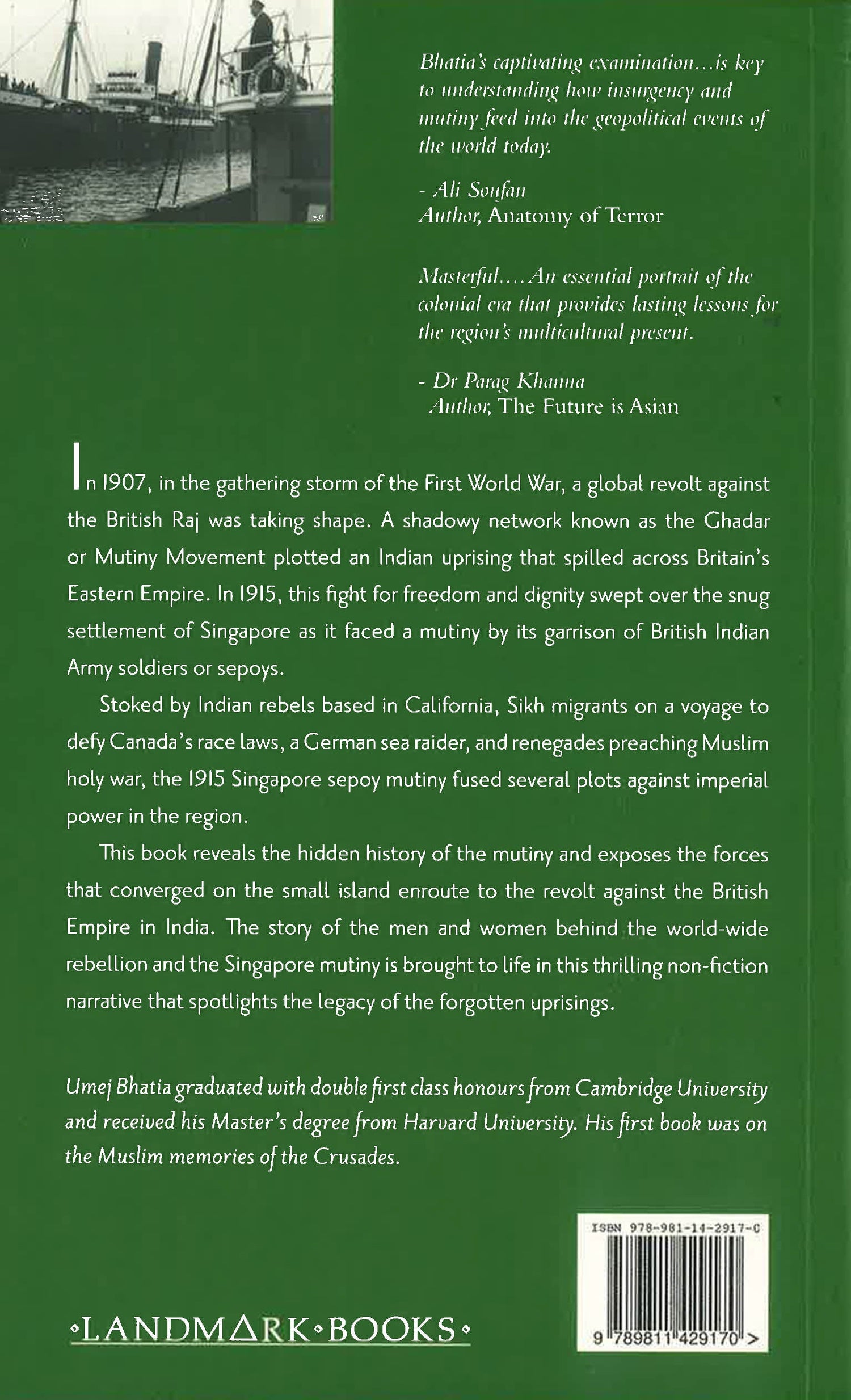 In 1907, in the gathering storm of the First World War, a global revolt against the British Raj was taking shape. A shadowy network known as the Ghadar or Mutiny Movement plotted an Indian uprising that spilled across Britain’s Eastern Empire. In 1915, the snug settlement of Singapore thus faced a mutiny by its garrison of British Indian Army soldiers or sepoys. Stoked by Indian rebels based in California, Sikh activists on a migrant voyage to Canada to contest its race laws, a German sea raider, and renegades preaching Muslim holy war, the 1915 Singapore sepoy mutiny fused several plots against imperial power in the region. This book reveals the hidden history of the mutiny and exposes the forces that converged on the small island en-route to the revolt against the British Empire in India. The story of the men and women behind the world-wide rebellion and the Singapore mutiny is brought to life in this thrilling non-fiction narrative that spotlights the legacy of the forgotten uprisings.