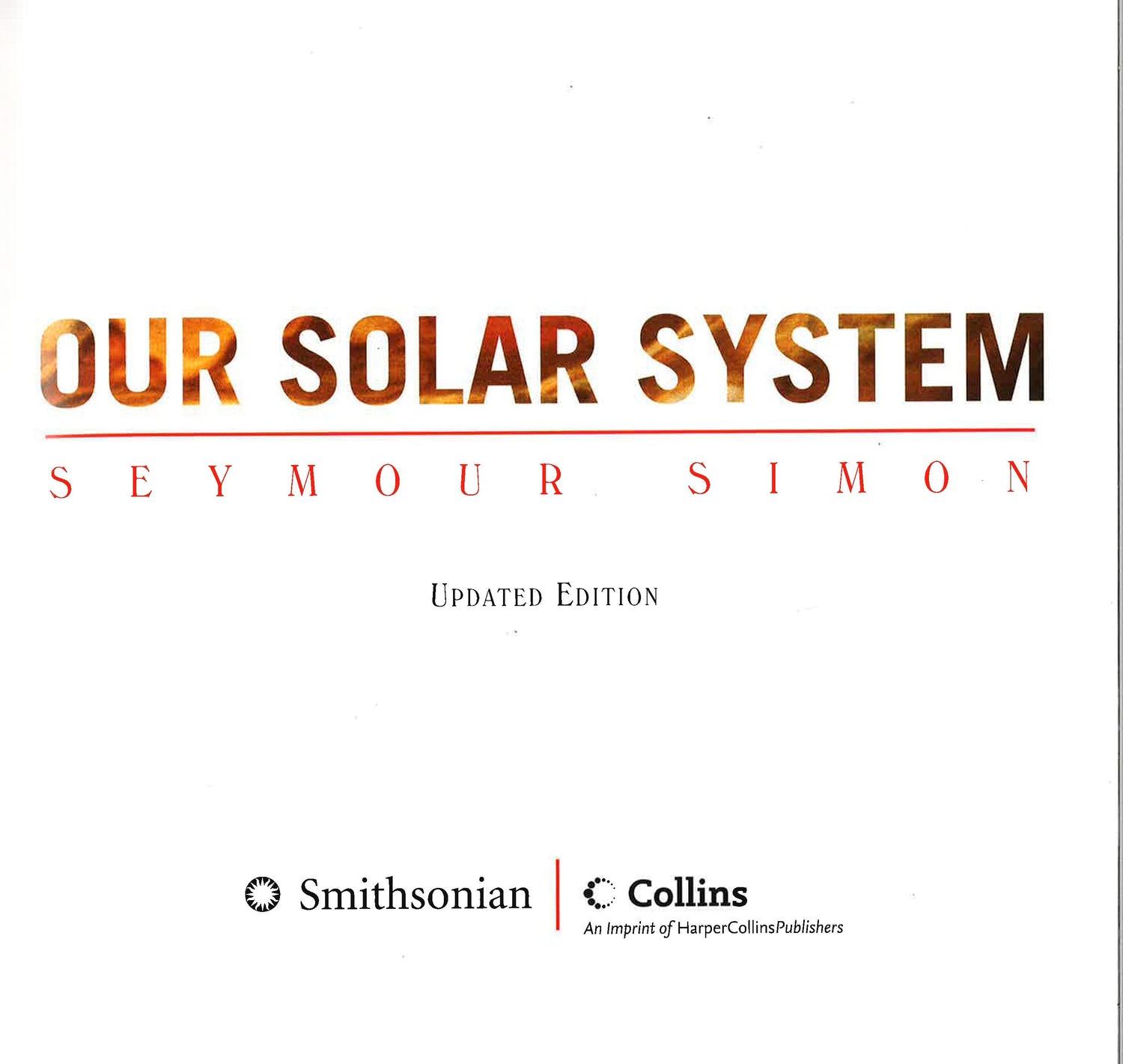 Born almost 5 billion years ago at the edge of the Milky Way galaxy, our Solar System is a place filled with mystery and wonder. In the last fifty years, we have learned more than ever about the farthest reaches of our world. With dramatic full-color photographs and spacecraft images, Our Solar System takes young readers on a fascinating tour of the sun, the eight planets, and their moons, plus asteroids, comets, and meteoroids. Award-winning science writer Seymour Simon has teamed up with the Smithsonian Institution on this new, updated edition of his much admired book about the vast and mystifying part of the universe that we live in.