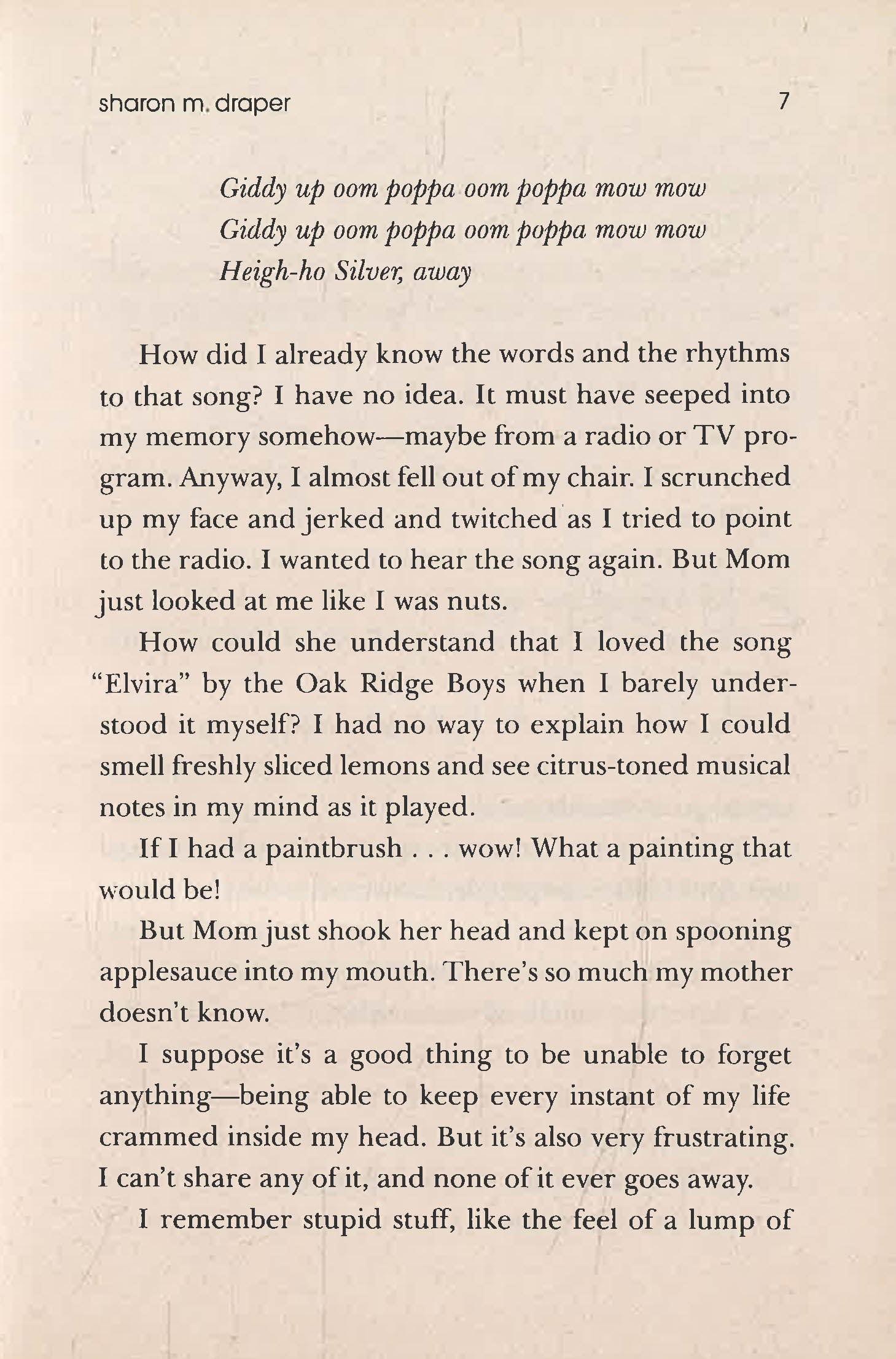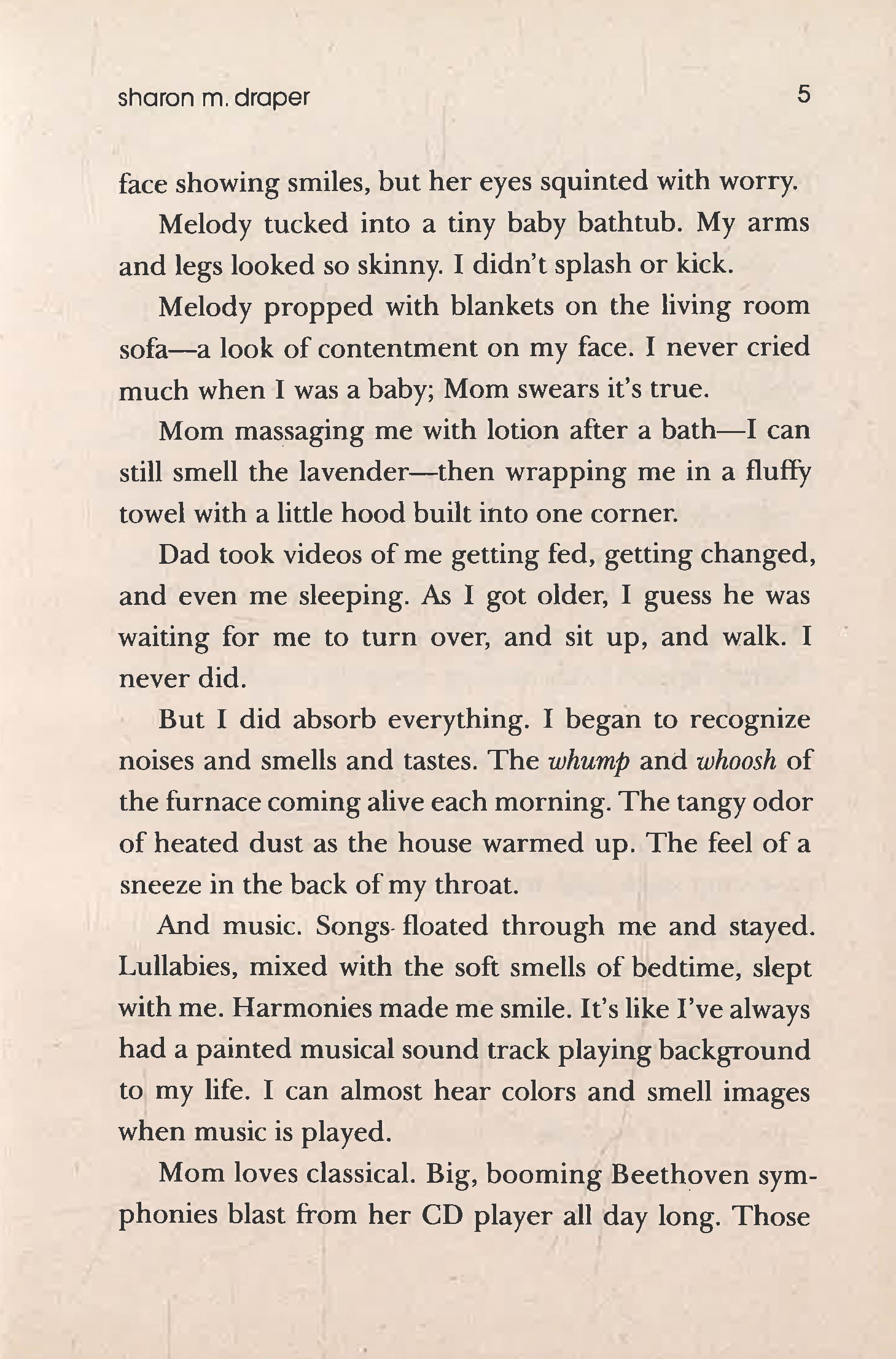 A New York Times bestseller for three years and counting!“A gutsy, candid, and compelling story. It speaks volumes.” —School Library Journal (starred review)“Unflinching and realistic.” —KirkusReviews (starred review)From award-winning author Sharon Draper comes a story that will forever change how we all look at anyone with a disability, perfect for fans of RJ Palacio’s Wonder. Eleven-year-old Melody is not like most people. She can’t walk. She can’t talk. She can’t write. All because she has cerebral palsy. But she also has a photographic memory; she can remember every detail of everything she has ever experienced. She’s the smartest kid in her whole school, but NO ONE knows it. Most people—her teachers, her doctors, her classmates—dismiss her as mentally challenged because she can’t tell them otherwise. But Melody refuses to be defined by her disability. And she’s determined to let everyone know it…somehow.