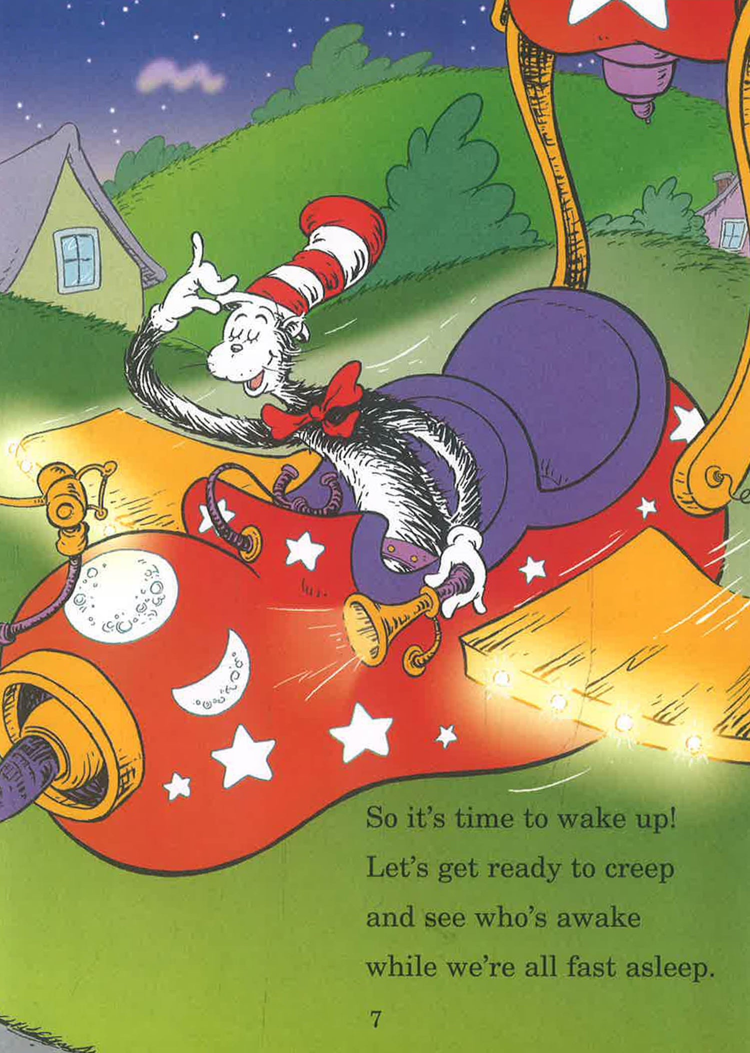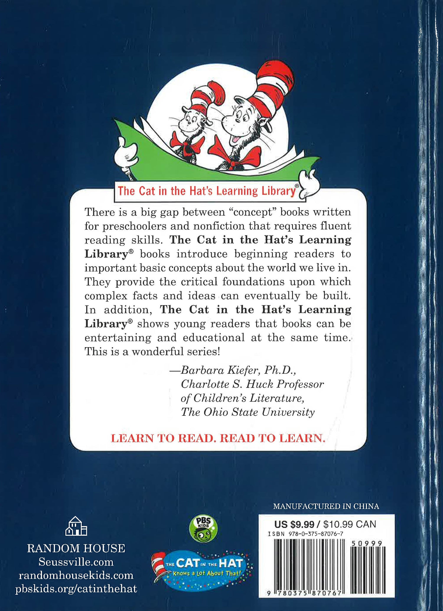 The Cat in the Hat, Sally, and Dick visit with nocturnal animals and learn about their special adaptations for surviving in the dark! Along with Thing One and Thing Two, the gang meet a host of common critters (among them raccoons, owls, and bats), as well as more exotic creatures (including aye-ayes, sidewinders, and kiwi birds), all of whom are active during the night and sleep during the day. Beginning readers will learn how eye shine makes some animals’ eyes glow in the dark, how bats can “see” in the dark using high-pitched squeaks, and much, much more! Ideal for supporting the Common Core State Standards and a natural for fans of the hit PBS Kids show The Cat in the Hat Knows a Lot About That!, this is a great way to introduce beginning readers to science!