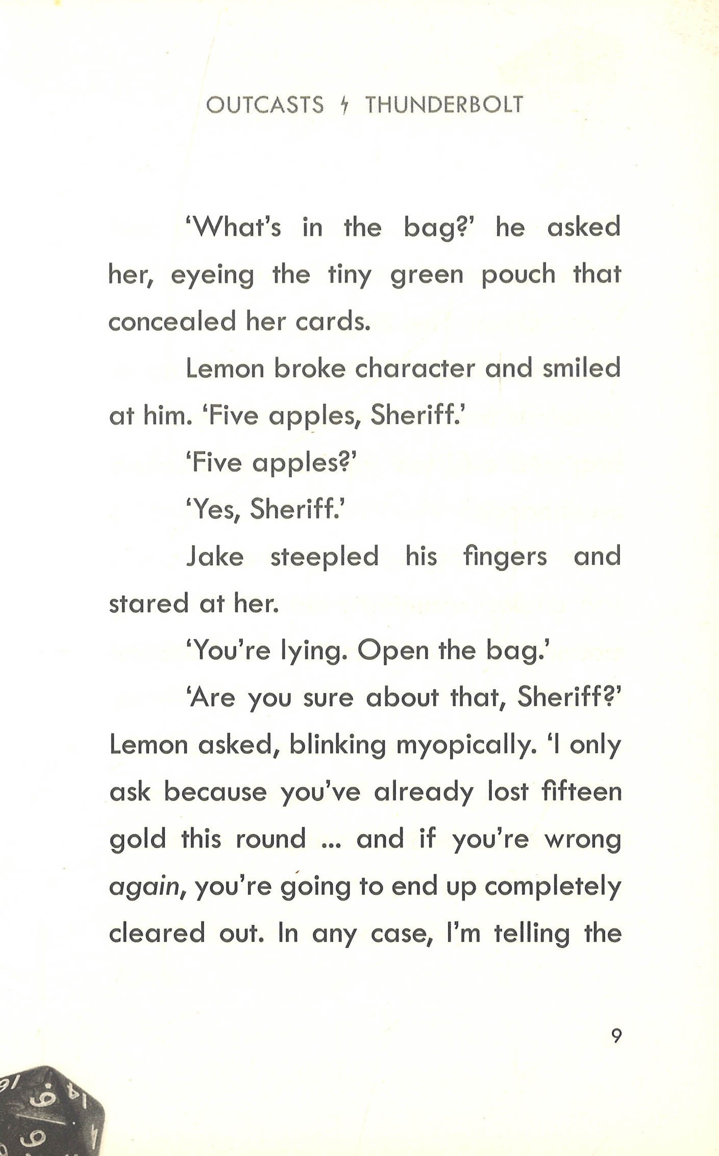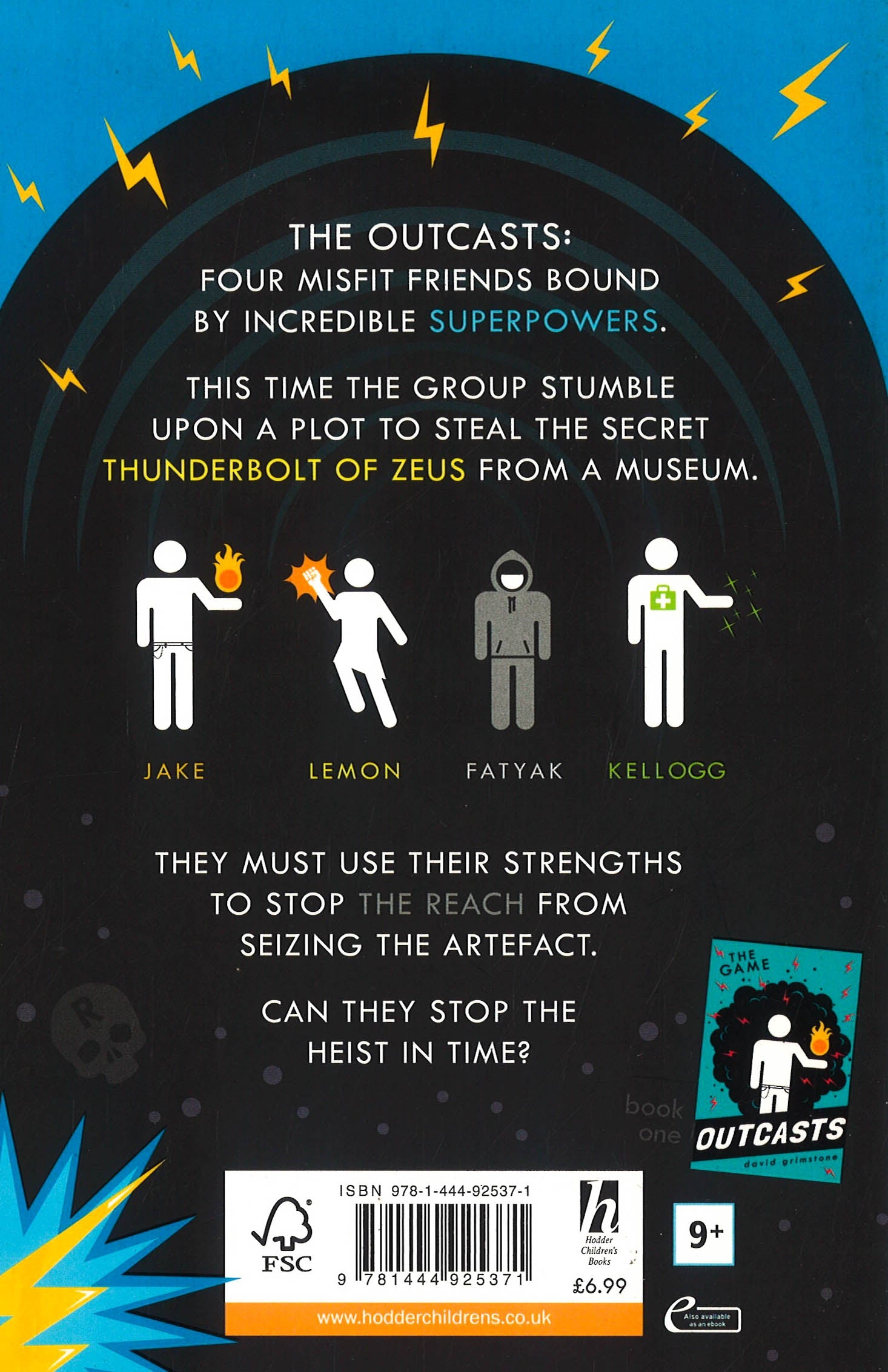 The Outcasts are swept up in another mythic adventure as their superpowers linger ... Self-named The Outcasts; Jake (Dealmo) and his friends Kellogg, Lemon and Fatyak like to spend their spare time playing role playing games. But things are about to get a little more interesting ...Armed with new superpowers, the friends are on a mission to stop a ruthless organisation from ruining the world. This time, it's God of the Sky, Zeus's Thunderbolt they must save. But will their superpowers be enough to win the battle ... and tame the storm...